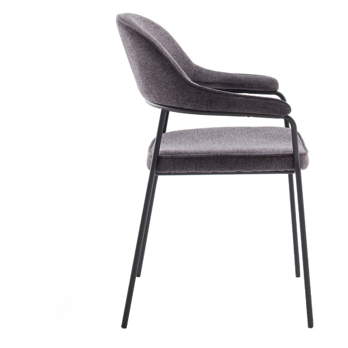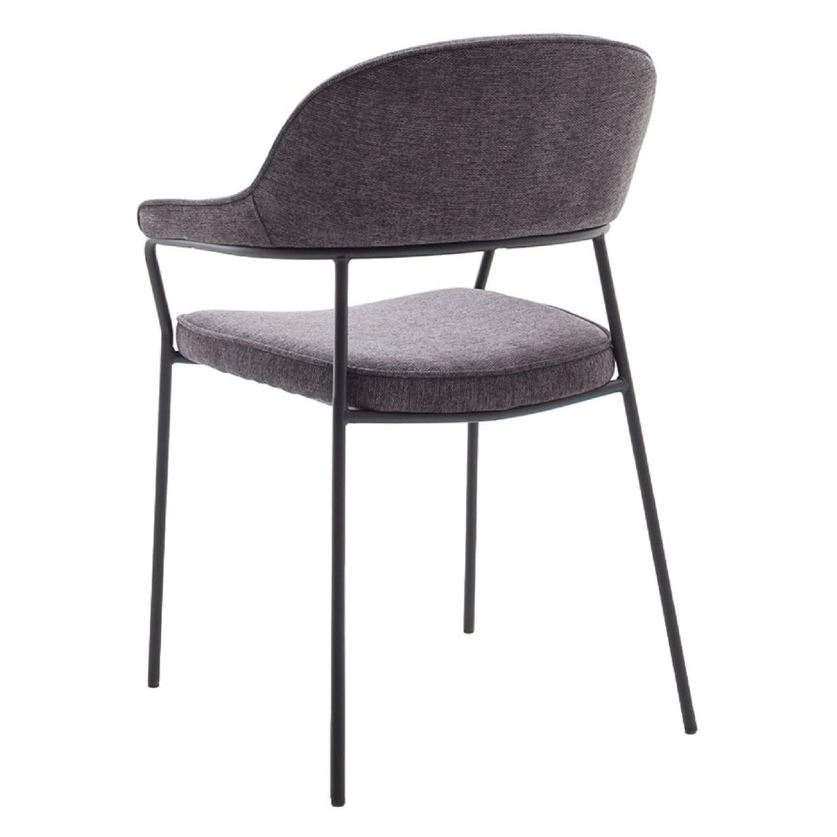 Het contrast tussen de zachte, textuurvolle chenille zitting en het minimalistische, zwarte metalen onderstel geeft de stoelen een moderne en tegelijk tijdloze look. Daardoor combineren ze moeiteloos met verschillende eettafels: van een robuuste houten tafel met metalen details tot een lichte Scandinavische tafel of een strakke, moderne eettafel. De compacte afmetingen maken de stoelen geschikt voor ronde, vierkante én rechthoekige tafels, zonder dat je inlevert op loop- en zitruimte. De donkergrijze kleur is neutraal en makkelijk te combineren met andere stoelen, een eetkamerbank of gekleurde accessoires. Zo creëer je een stijlvolle, veelzijdige eethoek die comfort, design en functionaliteit perfect in balans brengt, zowel in de keuken, eetkamer als vergaderruimte.