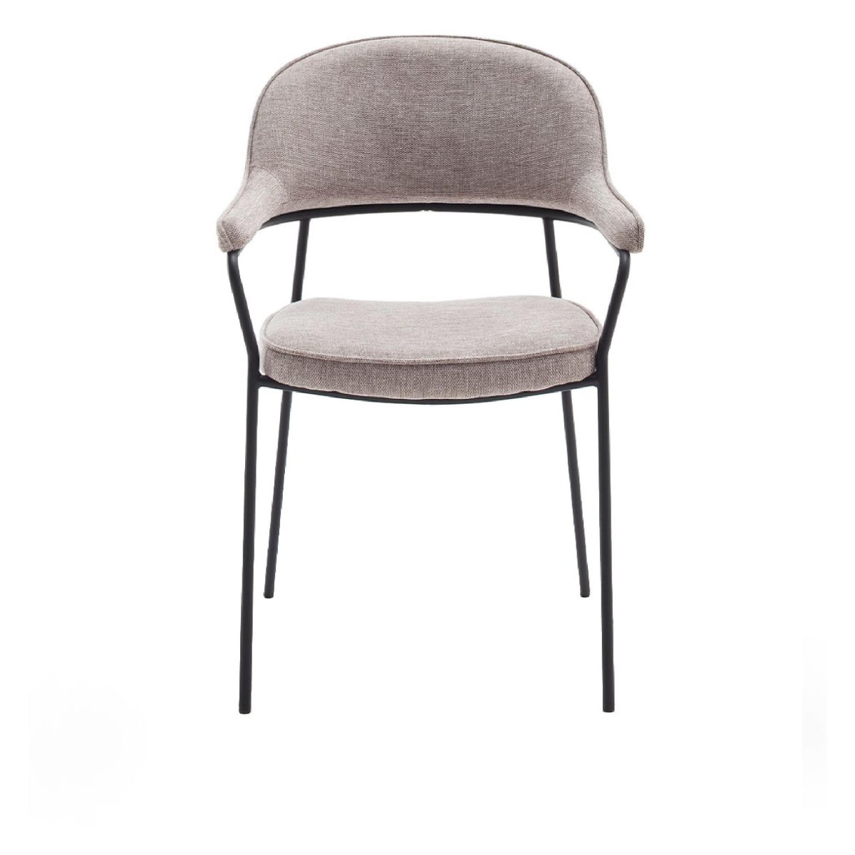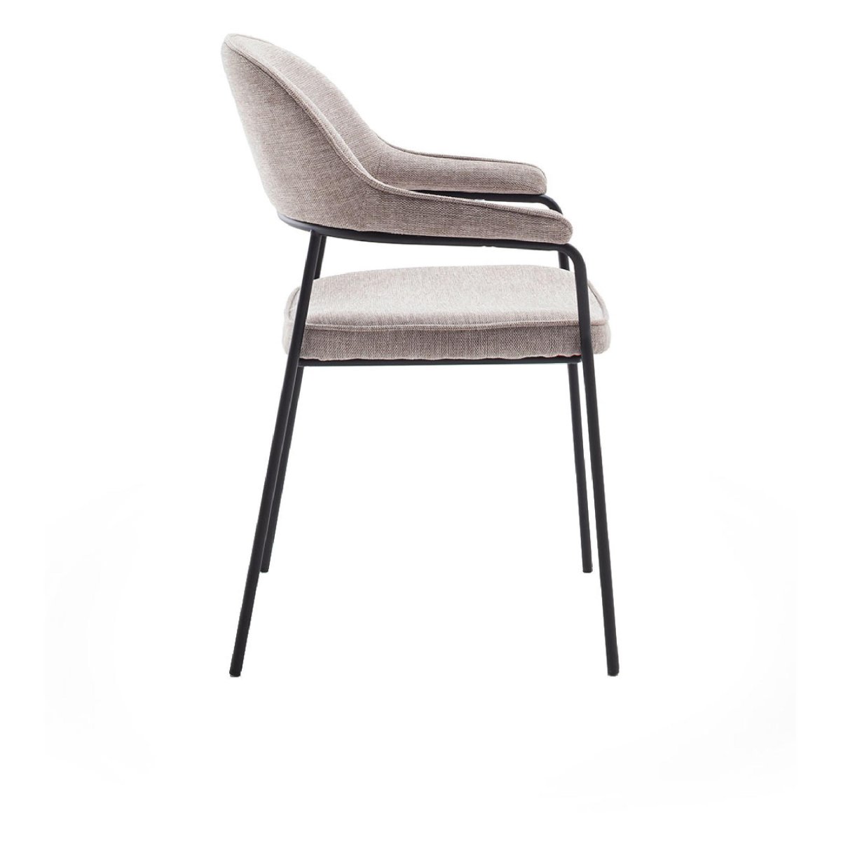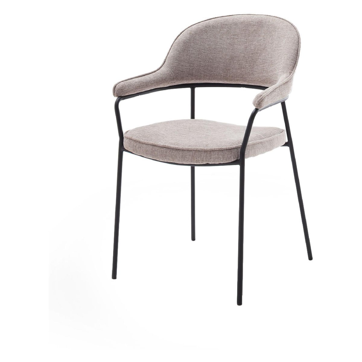 De ronde rugleuning en geïntegreerde armleuningen zorgen direct voor een comfortabele zit en goede ondersteuning. De zachte chenille stof voelt warm en aangenaam aan, terwijl de rond gevormde zitting en rug je lichaam prettig omsluiten. Zo zit je ontspannen tijdens ontbijt, diner, thuiswerken of een lange borrel. Door het compacte formaat schuif je de stoelen eenvoudig aan en onder de tafel, zonder dat je inlevert op zitcomfort. De ergonomische kromming van de rug bevordert een natuurlijke zithouding en helpt spanning in rug en schouders te verminderen, terwijl de armleuningen extra steun geven. De neutrale zandkleur sluit moeiteloos aan bij verschillende tafels, vloeren en woonstijlen, zoals modern, Scandinavisch, minimalistisch of hotel chique.