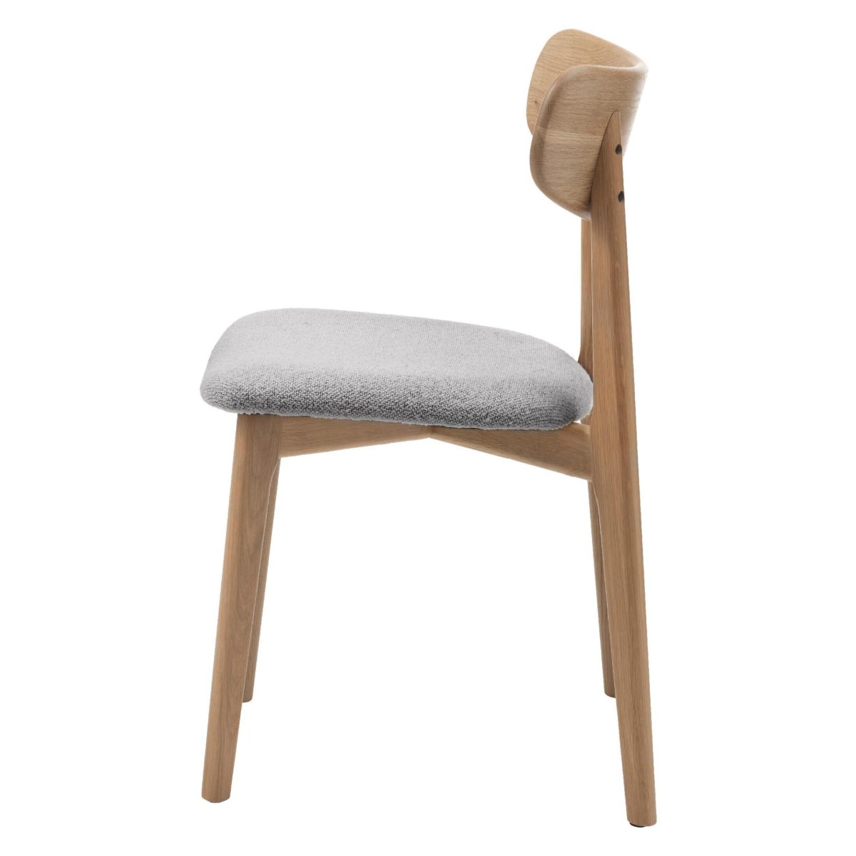 Deze set van 2 moderne eetkamerstoelen combineert zachte bouclé stof in mid grey met een onderstel van natuurlijk wit eiken voor een eigentijdse, tijdloze uitstraling. De licht gebogen rugleuning en het solide houten frame bieden comfortabele ondersteuning aan de eettafel, terwijl de slanke, compacte vorm probleemloos past in eethoek, keuken, studio of appartement. Door de slijtvaste bekleding en de neutrale, grijze kleur matchen deze stoelen eenvoudig met Scandinavische, moderne, minimalistische én Japandi interieurs. Ideaal als eetkamerstoel, keukenstoel, eetstoelen voor een ronde eettafel of extra zitplek bij een rechthoekige eettafel.