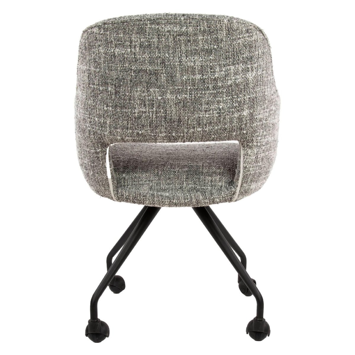 De grof geweven bekleding in eagle staalgrijs geeft deze set van 2 eetkamerstoelen een tijdloze, luxe uitstraling. De gemêleerde slubgaren creëren een subtiel kleurspel, waardoor de stoelen levendig en chic ogen zonder overheersend te zijn. Hierdoor combineren ze moeiteloos met uiteenlopende eettafels: van massief hout en zwarte metalen frames tot keramiek- en marmerlook tafels. In een modern interieur sluiten de stoelen mooi aan bij strakke lijnen, terwijl ze in een industrieel interieur een stoer accent vormen en in een Scandinavisch interieur juist warmte en gezelligheid toevoegen. De stof voelt aangenaam aan, is praktisch in gebruik en past goed bij zowel drukke gezinsgezinnen als een stijlvol ingerichte eetkamer of designwerkplek. Met deze Nest of Nora Tamo eetkamerstoelen kies je voor een draaibare eetkamerstoel met wieltjes die comfort, design en functionaliteit in één product samenbrengt.