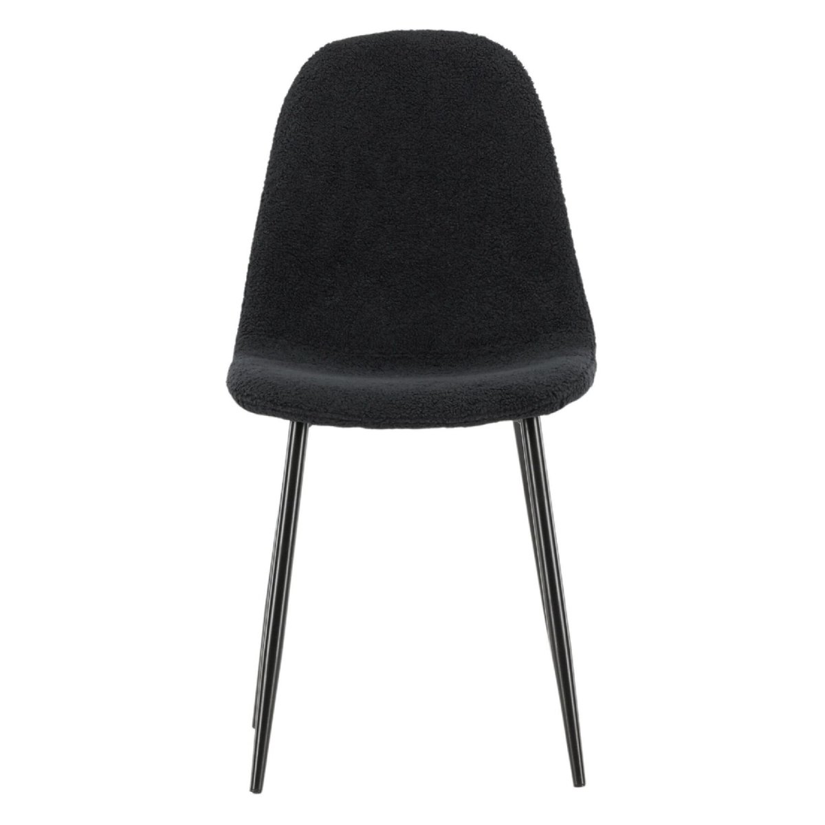De zachte teddy bekleding geeft deze zwarte eetkamerstoelen een warme, luxe uitstraling én comfortabel zitcomfort. De licht verende zitting ondersteunt prettig tijdens lange diners, spelletjesavonden of thuiswerken aan de eettafel. Dankzij de compacte afmetingen schuif je de stoelen eenvoudig aan zowel kleine als grotere tafels, zonder dat je eethoek druk oogt. De afgeronde vormen zorgen voor een vriendelijke, rustige look in je interieur. De diepe zwarte kleur combineert moeiteloos met houten eettafels, keramische bladen of glazen tafels. Zo creëer je snel een cosy, moderne eetkameropstelling die er stijlvol uitziet en elke dag comfortabel zit.