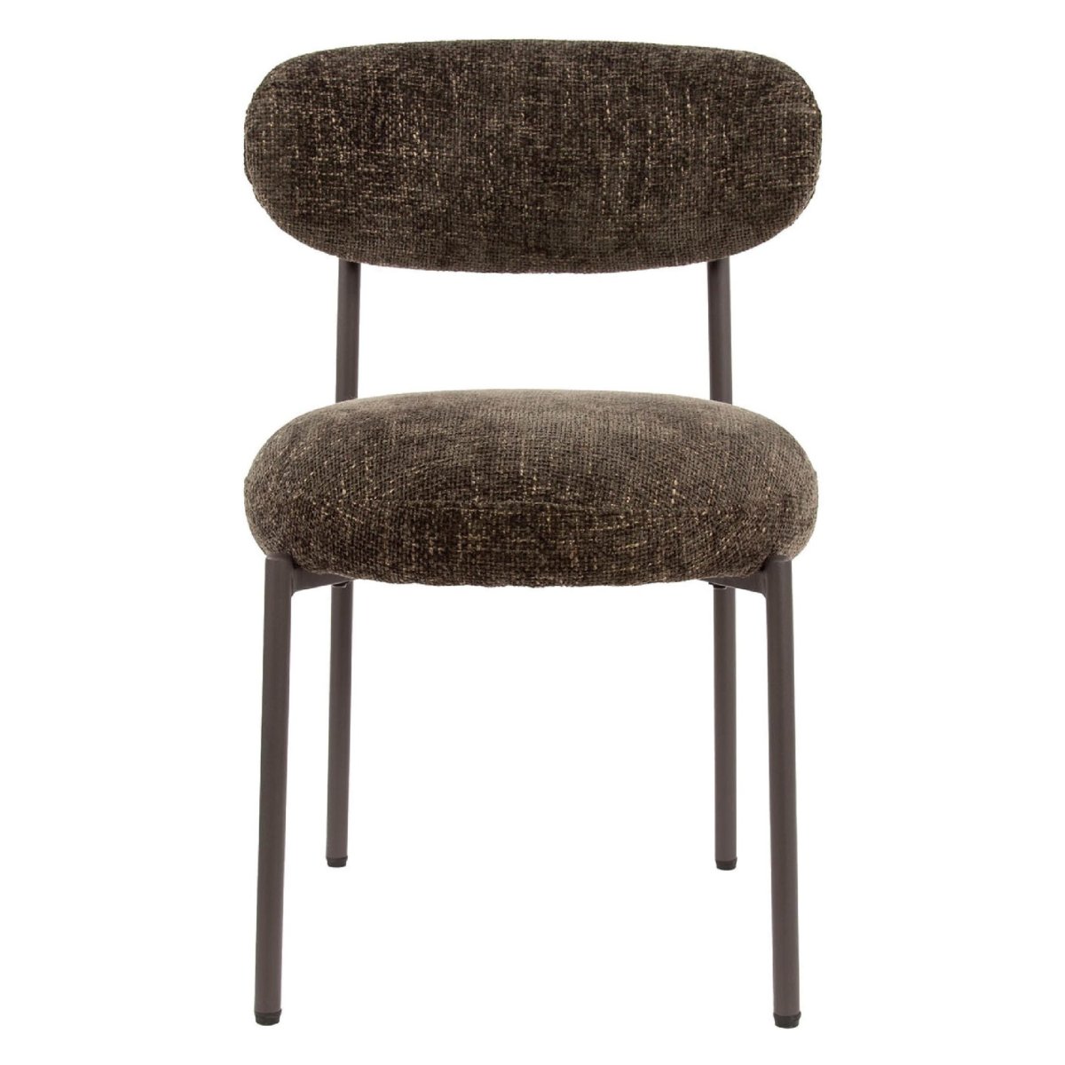 Deze set van 2 Nest of Nora eetkamerstoelen uit de Vesk serie is een stijlvolle en comfortabele toevoeging aan je eetkamer of keuken. De stoelen hebben een ronde zitting en rugleuning met een zachte, comfortabele bekleding in cargo bruin. Dankzij de neutrale, warme kleur zijn ze eenvoudig te combineren met allerlei eettafels en interieurstijlen. De geïntegreerde pocketvering in de zitting zorgt voor extra zitcomfort, waardoor je ontspannen kunt genieten van lange etentjes, gezellige borrelavonden of een avond thuiswerken aan tafel. De slanke metalen poten geven de stoelen een moderne, luchtige uitstraling, terwijl het compacte formaat ze ideaal maakt voor zowel grote als kleinere ruimtes. Perfect als eetkamerstoel, keukenstoel of als extra stoel in de woonkamer.