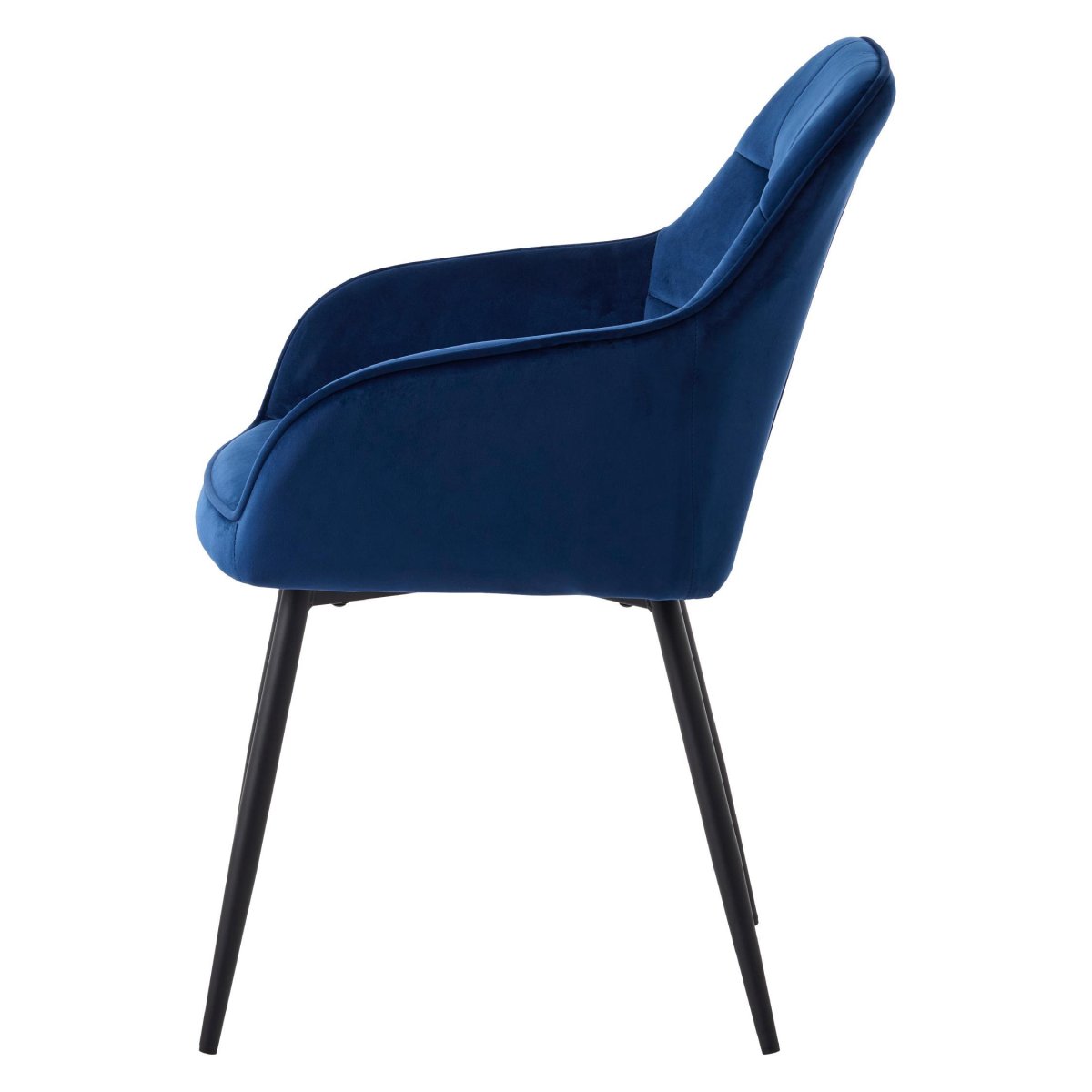 De combinatie van rijke blauwe fluweelstof en slanke zwarte poten geeft deze eetkamerstoelen een eigentijdse, chique uitstraling die perfect past in moderne, industriële en elegante interieurs. De decoratieve stiknaden in een subtiel ruitpatroon geven de zitting extra karakter en zorgen voor een stijlvolle, hoogwaardige look. Met een breedte van 59,5 cm zijn de stoelen makkelijk te plaatsen rond verschillende vormen eettafels, van ronde tot rechthoekige modellen. Gebruik ze als comfortabele eetkamerstoelen, vergaderstoelen aan een bureau of statement stoelen in de keuken. Dankzij het design met armleuningen geniet je van extra comfort zonder dat de stoelen log ogen. Zo creëer je eenvoudig een stijlvolle, uniforme uitstraling rond je eettafel en voeg je tegelijkertijd functionaliteit en sfeer toe aan iedere ruimte.
