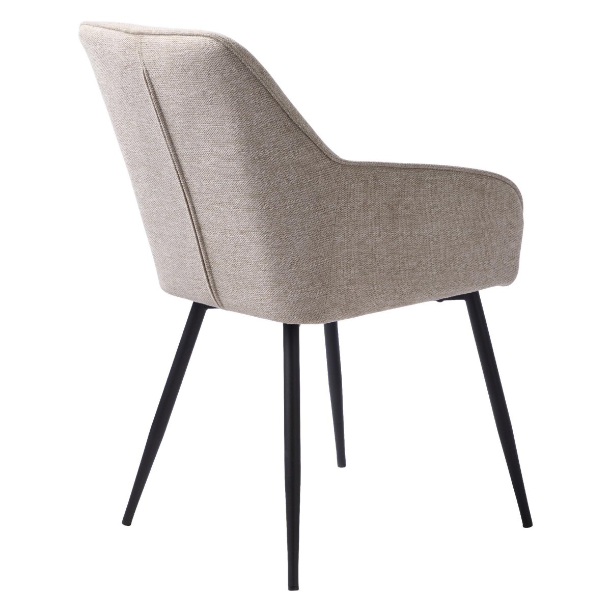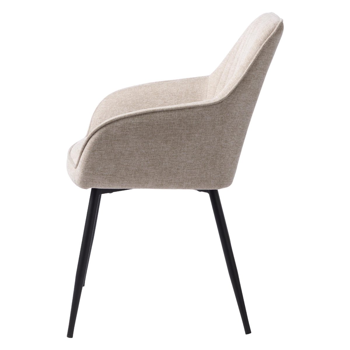 Een set van twee comfortabele eetkamerstoelen met armleuning in een warme zand/beige kleur, ideaal voor de eethoek, keuken of woonkeuken. De zachte, slijtvaste stof met stijlvolle mélange-look wordt gecombineerd met slanke, zwarte metalen poten voor een moderne, luchtige en tijdloze uitstraling. De ergonomisch gevormde, afgeronde rugleuning met verticale stiksels en fijne armsteunen zorgt voor een stabiele en ontspannen zithouding, ook tijdens lange etentjes, werkuren of spelavonden. Dankzij de praktische afmetingen en het stevige stalen onderstel passen deze stoelen moeiteloos in uiteenlopende interieurs, van modern en industrieel tot Scandinavisch en minimalistisch. Perfect inzetbaar als eetkamerstoelen, kuipstoelen of design stoelen voor dagelijks intensief gebruik.