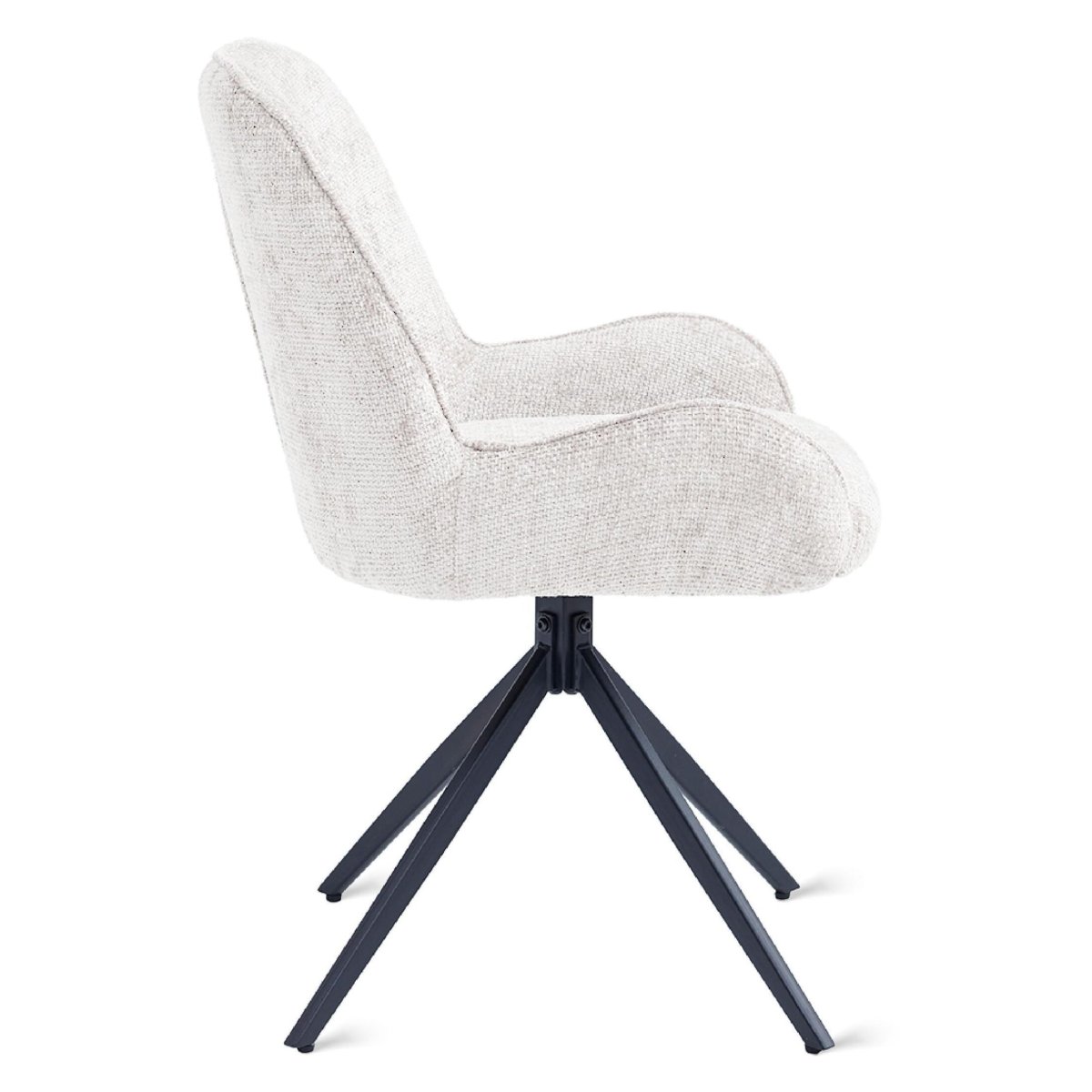 De royale zitdiepte en prettige zithoogte zorgen voor een ontspannen, ergonomische zithouding, of je nu uitgebreid dineert, thuiswerkt of snel ontbijt. De volledig gestoffeerde kuip omhult het zitvlak comfortabel, vermindert drukpunten en maakt dat je langer prettig blijft zitten. De licht flexibele kuipvorm biedt natuurlijke ondersteuning zonder stug aan te voelen, zodat je rug en benen goed worden ontzien. De zachte textuur van de stof voegt warmte en gezelligheid toe aan je interieur, terwijl de stoffering geluid rondom de tafel subtiel dempt. Dat zorgt voor een rustige, aangename sfeer tijdens gesprekken, etentjes en borrels. Deze eetkamerstoelen zijn daarmee perfect als dagelijkse stoelen voor de eettafel: stevig, zacht en uitnodigend tegelijk.