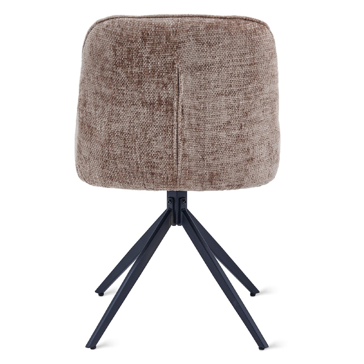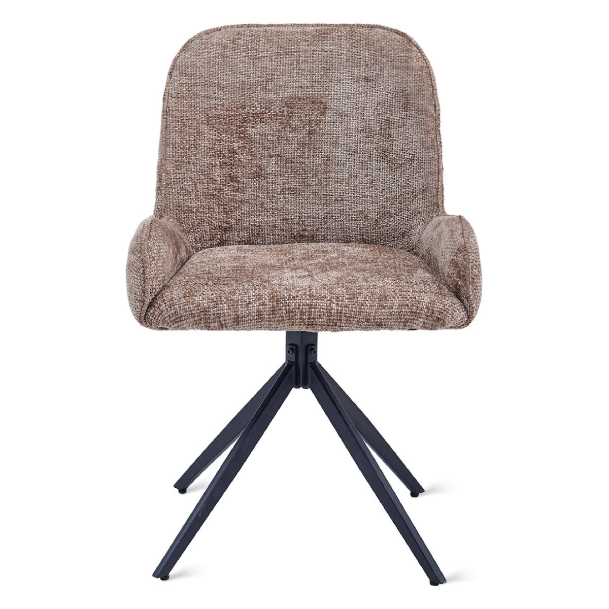 De textielbekleding in taupe, lichtbruin geeft je interieur direct een warme, rustige basis. De natuurlijke tint combineert moeiteloos met houten eettafels, zwarte accenten en metalen onderstellen, waardoor je eenvoudig een harmonieus geheel creëert in je eetkamer of woonkeuken. De rijke structuur van de stof voegt diepte toe aan de kleur en zorgt voor een luxe, uitnodigende uitstraling. Daarnaast voelt de bekleding aangenaam en zacht aan, wat de totale zitervaring nog comfortabeler maakt. Qua onderhoud zijn deze gestoffeerde stoelen praktisch: regelmatig stofzuigen met een zachte meubelborstel en vlekken direct voorzichtig deppen met een licht vochtige doek zijn meestal voldoende. Zo blijven de eetkamerstoelen er fris en verzorgd uitzien, ook bij intensief dagelijks gebruik.