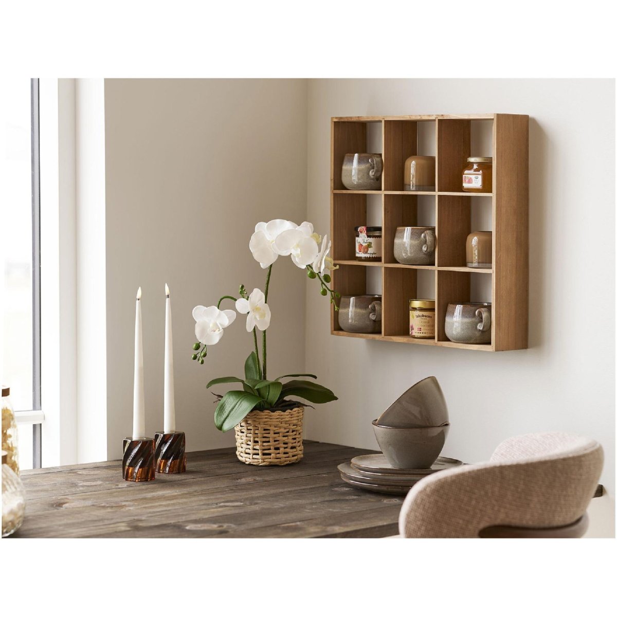 De set van 2 theelichthouders brengt direct balans en sfeer in je interieur. Plaats één houder op de vensterbank en de ander op de salontafel, of presenteer ze samen op een dienblad met andere kleine woonaccessoires zoals vaasjes, boekjes of een geurkaars. Tijdens een etentje zorgen ze voor intieme, gezellige tafeldecoratie zonder veel ruimte in te nemen. Gebruik ze ook in de hal voor een warm welkom, in de slaapkamer voor zachte, indirecte verlichting of in de badkamer voor een spa-achtige sfeer. Het gladde glasoppervlak is eenvoudig schoon te maken, zodat je de houders snel weer stof- en kaarsrestenvrij hebt. Combineer met andere bruin- of rookglas items voor een ton-sur-ton look, of mix met helder glas, messing en zwart metaal voor contrast en extra lichtspel. Zo creëer je in elke ruimte een stijlvolle, warme en uitnodigende ambiance met deze Nest of Nora theelichthouders.