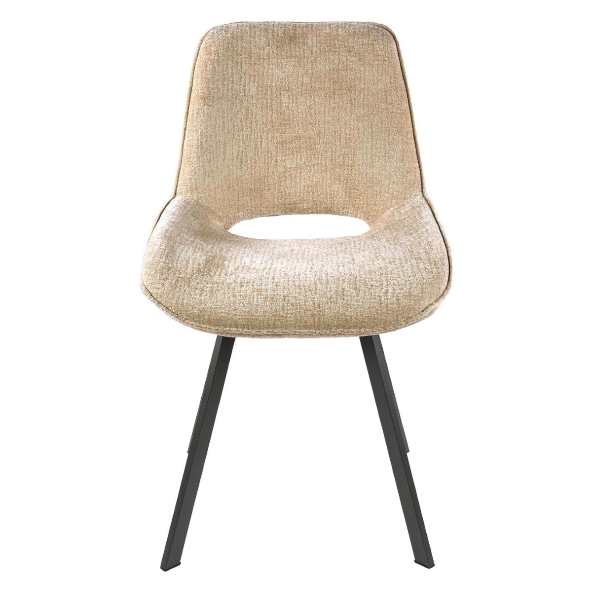 Het ontwerp van deze Eldan eetkamerstoelen draait om de mix van een zachte, zandkleurige bekleding met een strak gevormd onderstel van gepoedercoat staal in antraciet. Het metalen frame zorgt voor stabiliteit en een lange levensduur, terwijl de slanke poten de stoelen visueel licht houden, zodat je eethoek niet vol of zwaar oogt. De combinatie van zandkleurige stof en antraciet metalen poten past moeiteloos bij uiteenlopende woonstijlen: van een moderne of industriële eettafel met metalen details tot een Scandinavisch interieur met veel hout en lichte tinten. De duurzame poedercoating op het onderstel is goed bestand tegen dagelijks gebruik, waardoor de stoelen lang mooi blijven en hun moderne uitstraling behouden.