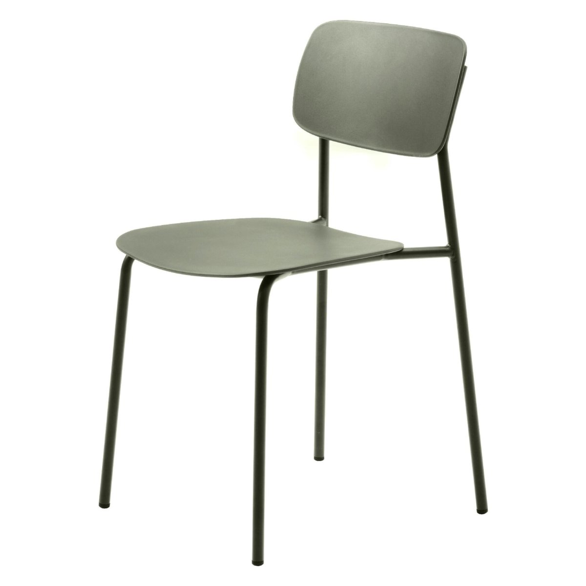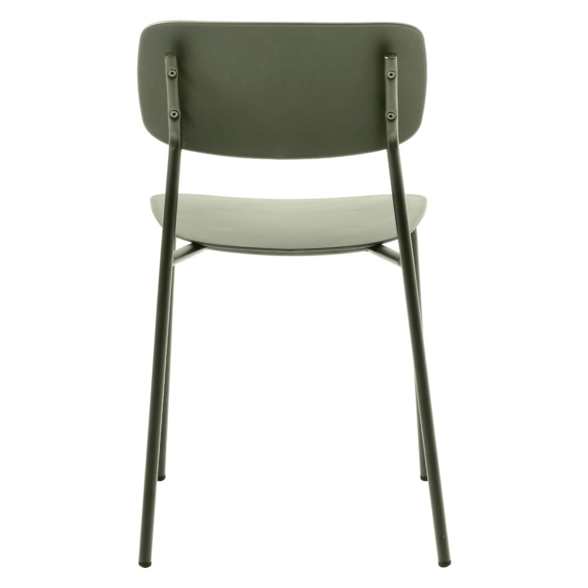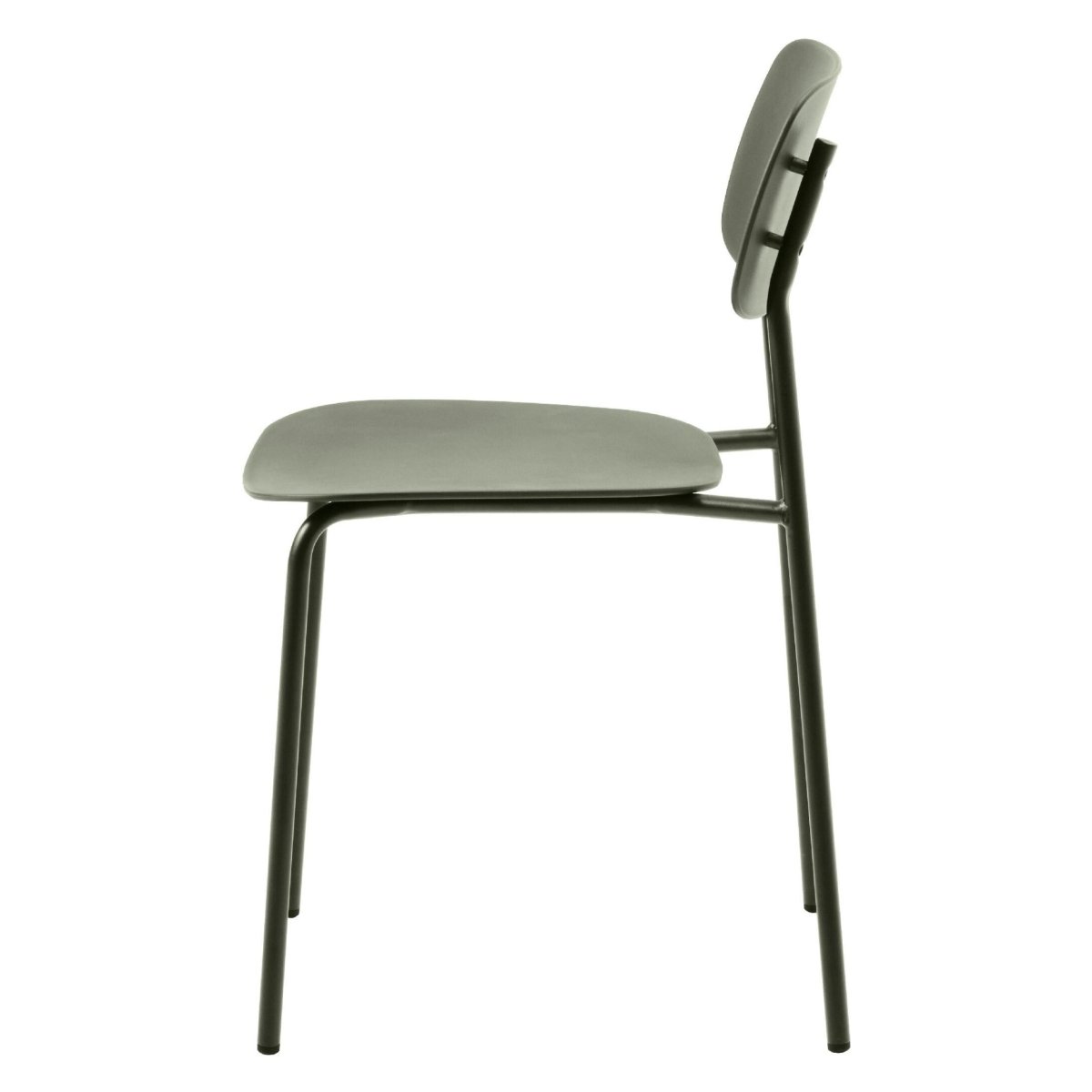De stoelen zijn volledig uitgevoerd in metaal, met robuuste stalen poten die intensief dagelijks gebruik moeiteloos aankunnen. Het materiaal is slijtvast, vormvast en eenvoudig schoon te houden: een vochtig doekje is voldoende om zitting en frame weer netjes te krijgen. Ideaal in een gezin met kinderen, huisdieren of wanneer je vaak gasten ontvangt. Dankzij het gebruik van GRS-gecertificeerd materiaal kies je bewust voor een stoel met gerecyclede grondstoffen en een lagere milieu-impact. De egale poedercoating in olijfgroen (RAL 6003) beschermt tegen krassen, is kleurvast en blijft mooi, zelfs bij veelvuldig verplaatsen en dagelijks gebruik. De natuurlijke groentint combineert prachtig met hout, beton, marmer, zwarte accenten en zachte textielen, waardoor je eenvoudig een rustige, harmonieuze basis in de eethoek creëert.