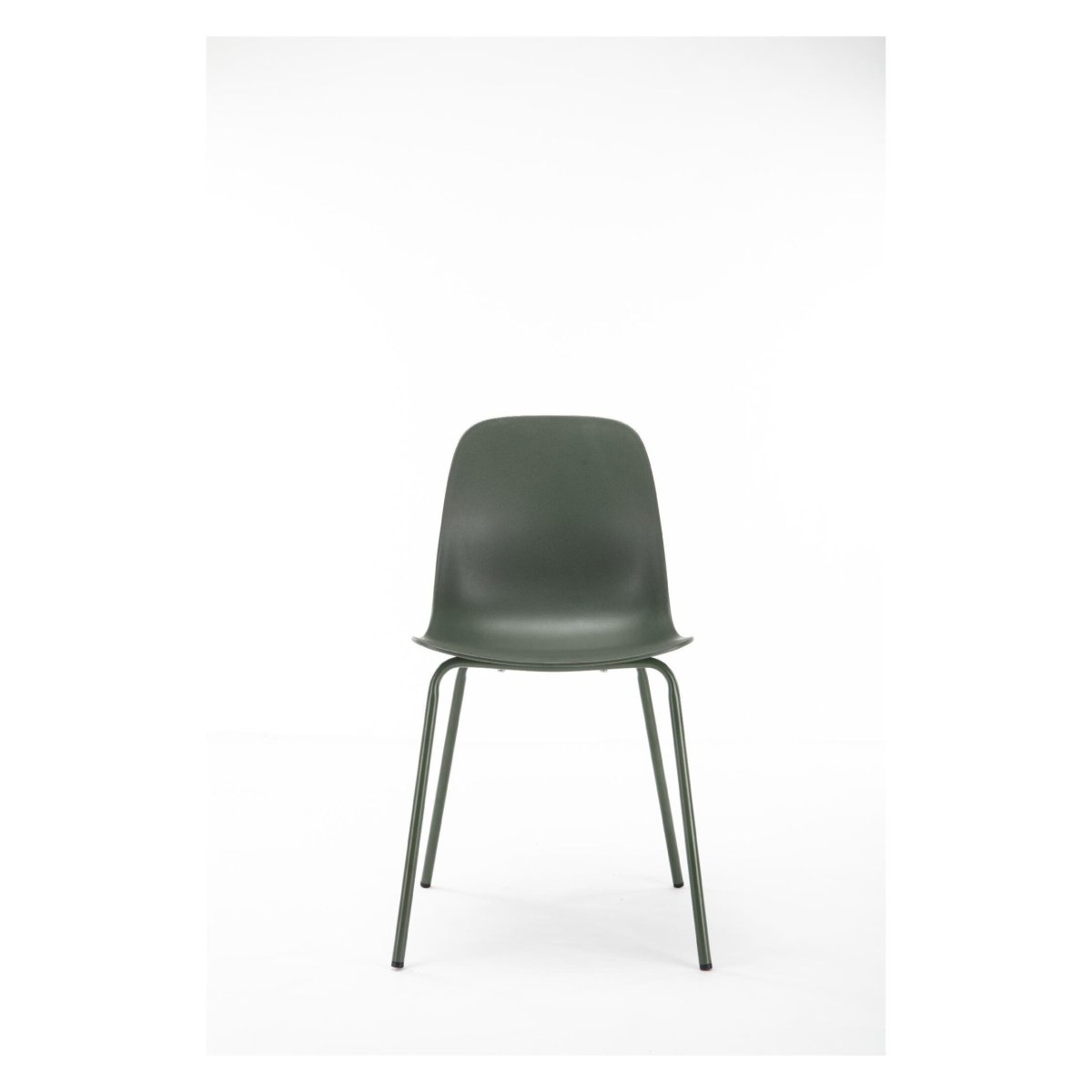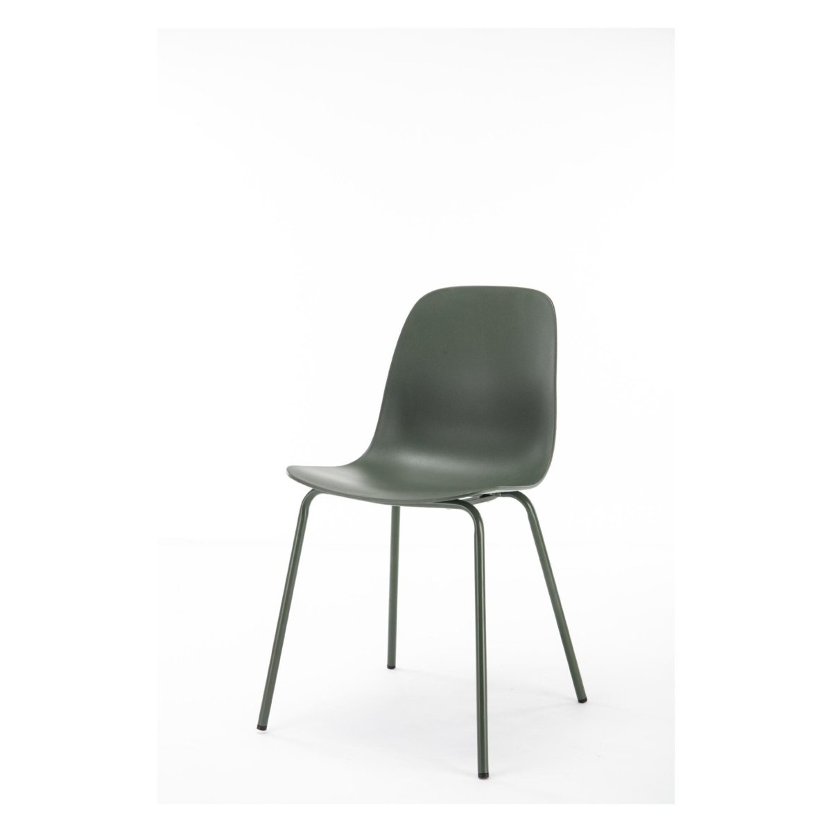 De zitschaal met subtiele ronding in de rugleuning ondersteunt je natuurlijke zithouding, zonder overbodige dikte of details. De ergonomische vorm sluit prettig aan in je onderrug, zodat je ook tijdens lange etentjes, thuiswerkdagen of spelletjesavonden comfortabel blijft zitten. Door de slanke lijnen, dunne randen en open onderstel oogt de eetkamerstoel licht en luchtig, ideaal wanneer je een ruimtelijk gevoel in de eetkamer of keuken wilt behouden. De rustige, egale olijfgroene afwerking van zitvlak én poten biedt een kalm beeld dat moeiteloos combineert met houten eettafels, natuursteen, beton of zwarte metalen accenten. De strakke kuip in combinatie met de rechte poten past perfect in moderne, minimalistische en industriële interieurs, maar laat zich net zo goed mixen met zachte stoffen, vloerkleden, aardetinten en warme houtsoorten.