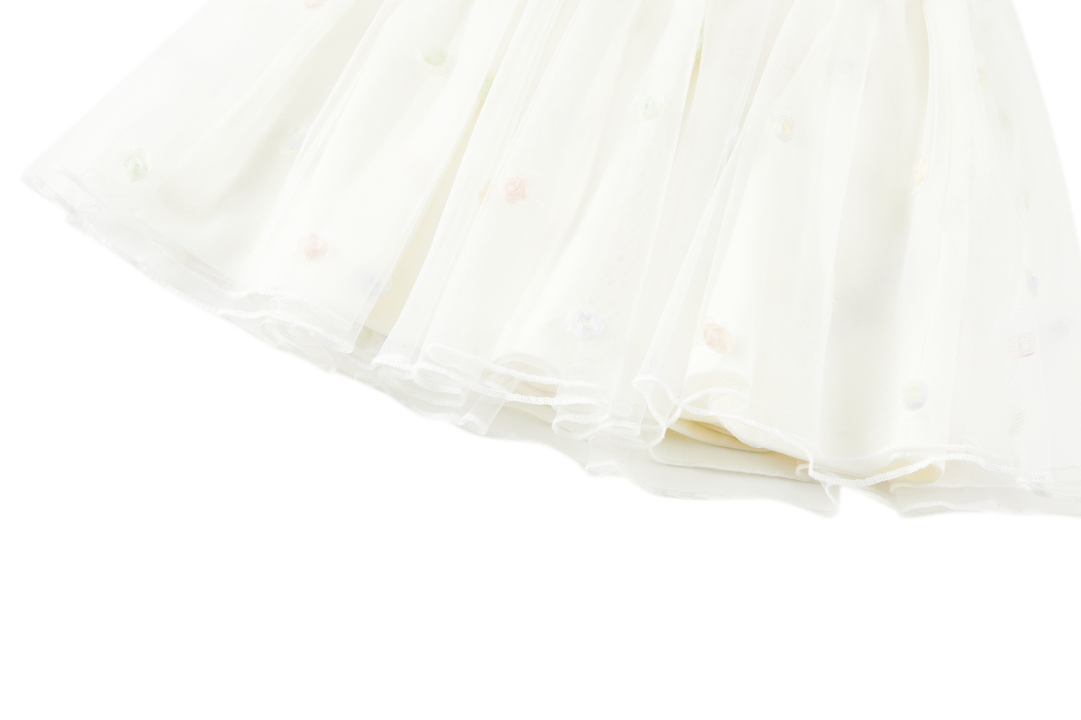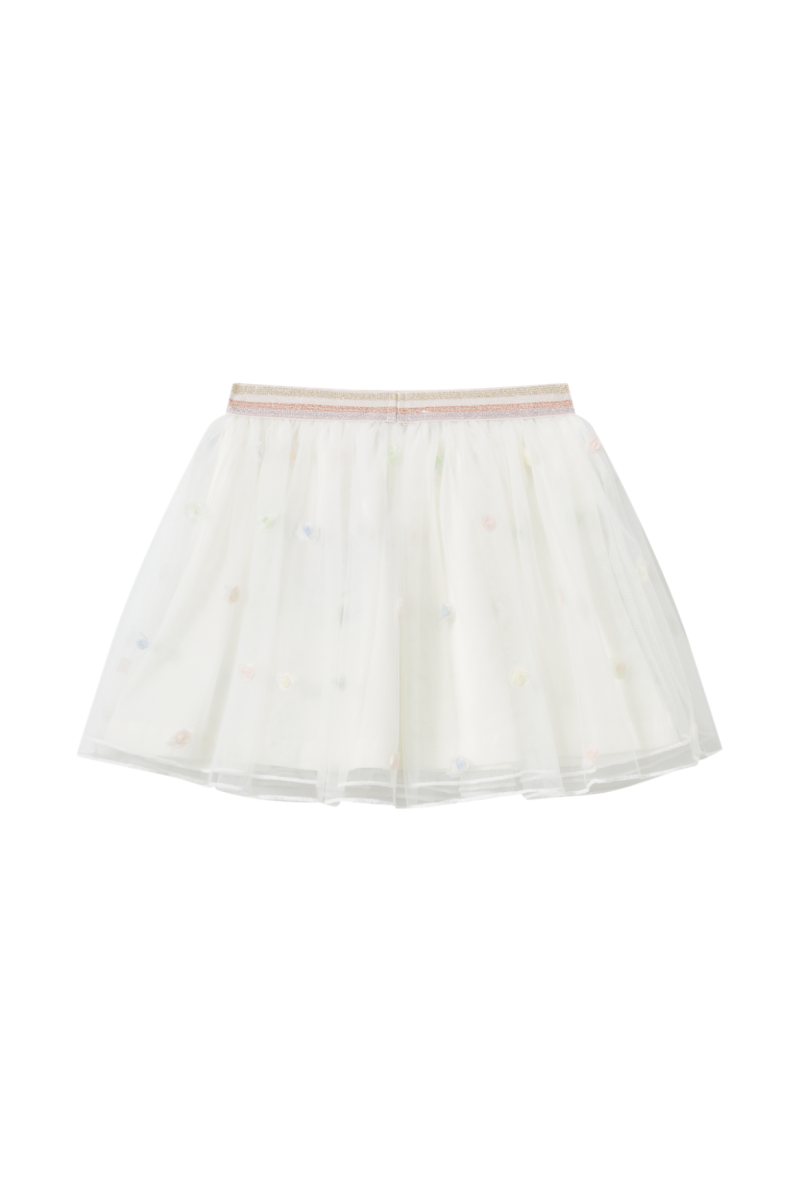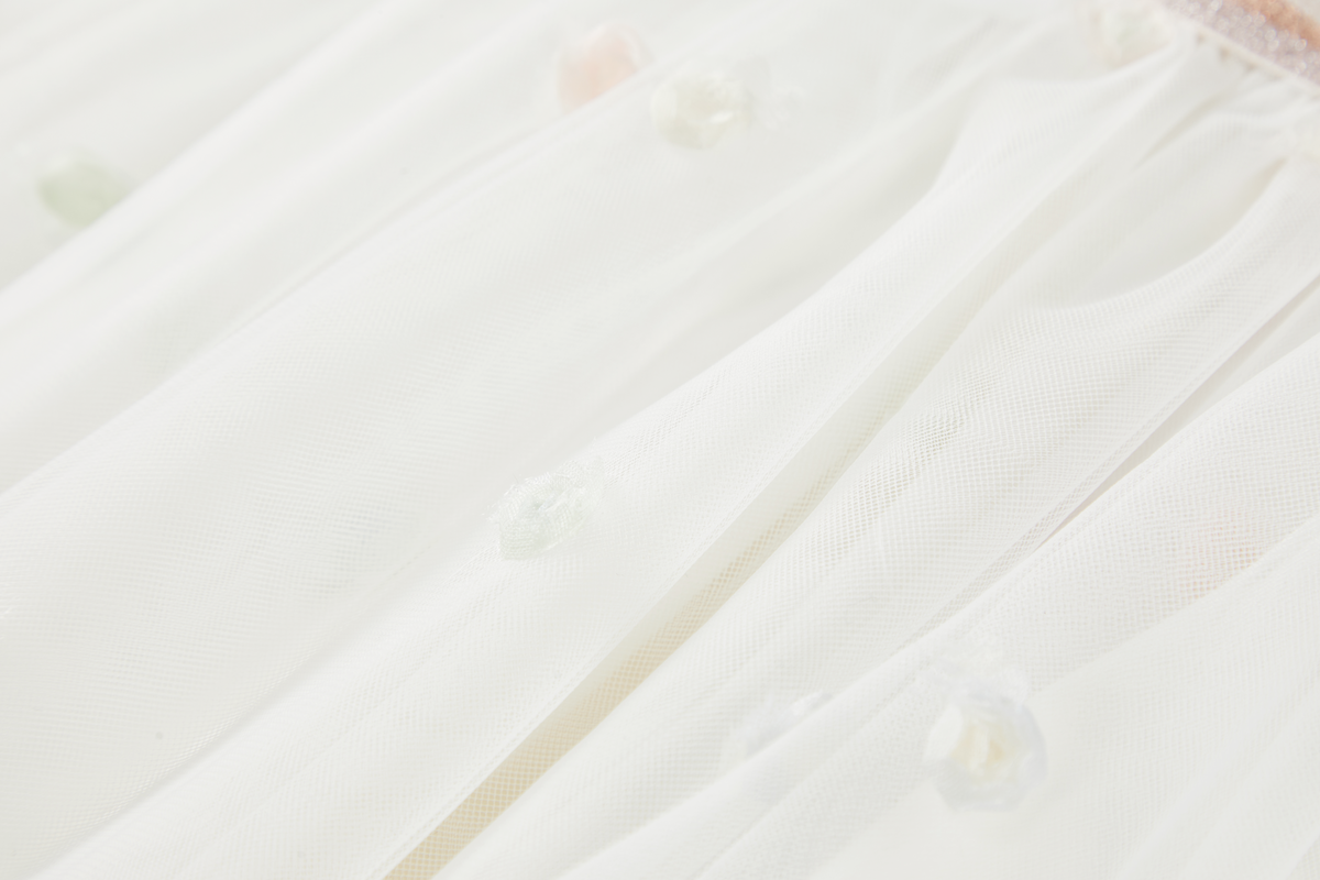 Super schattig rokje in ecru met tule en kleine gekleurde roosjes. Prachtig!
