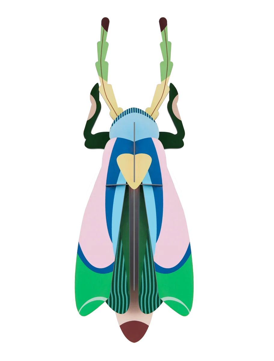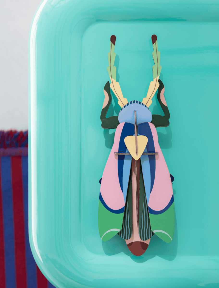 In het echte dierenleven scharrelen ze onopvallend rond onder bladeren en langs takken, maar deze flamboyante en kleurrijke torren – uit alle delen van de wereld – zijn zó van de catwalk gestapt. Geef ze een plek tussen je kunstschatten, hang ze aan de muur, laat ze over je tafel rondkruipen en creëer je eigen insectenverhaal.