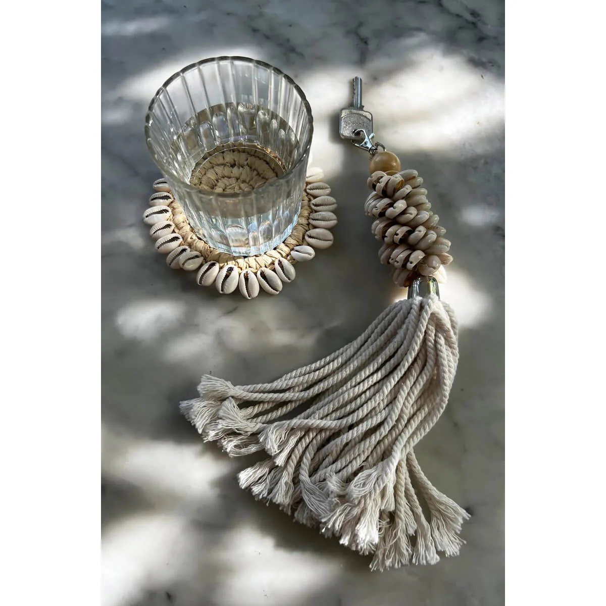 Materialen: Schelp, Raffia