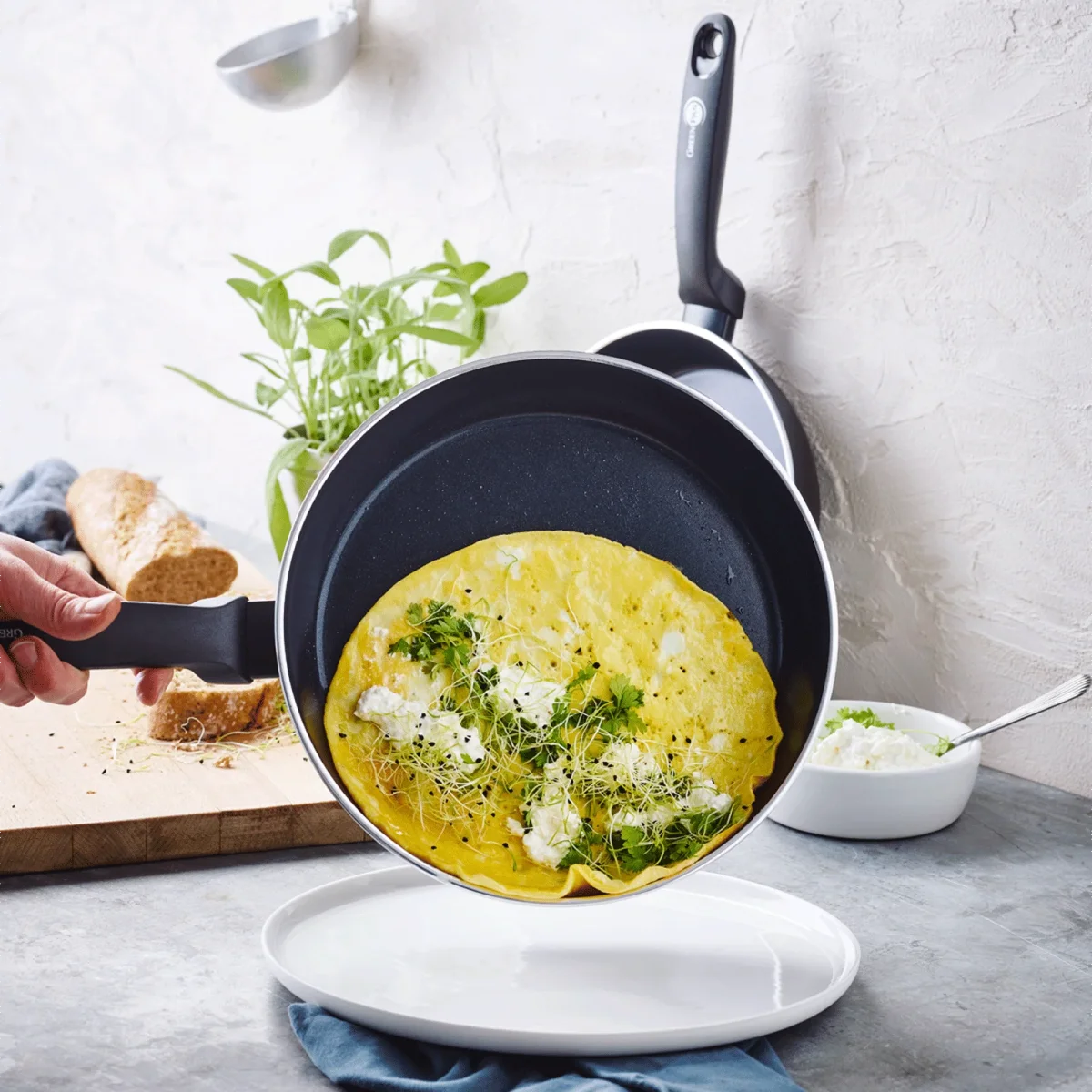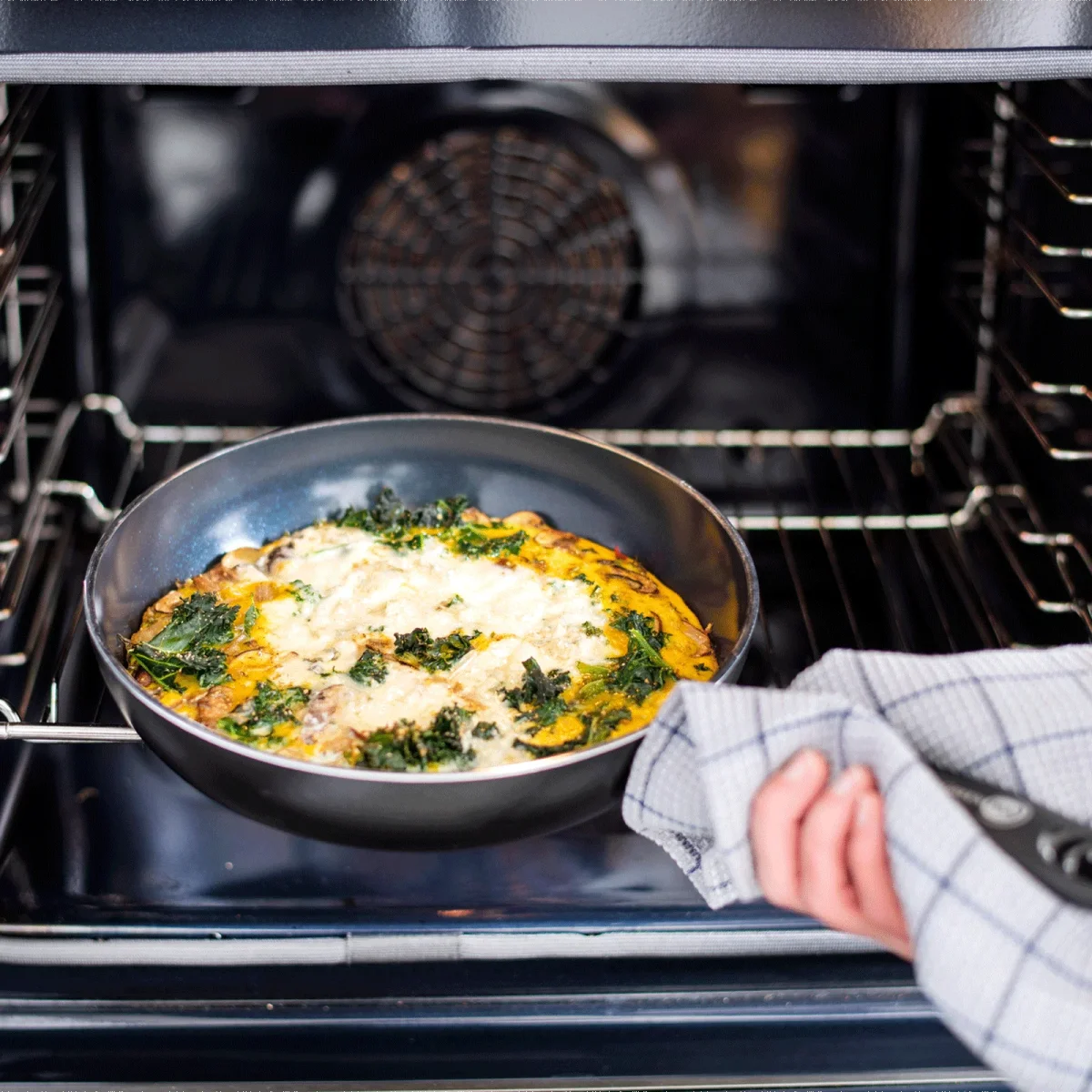 Maak je het jezelf graag makkelijk in de keuken? Dan is deze pan perfect voor jou. Dankzij het slimme ontwerp met rechte randen heeft ze een bakoppervlak dat 25% groter is. Handig als je een groot gezin hebt of een extra portie wil maken van je favoriete gerecht!