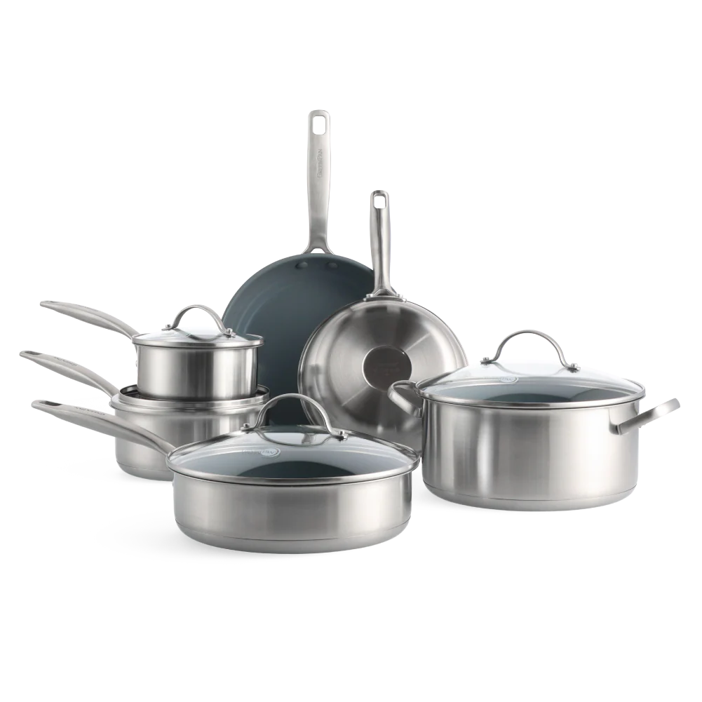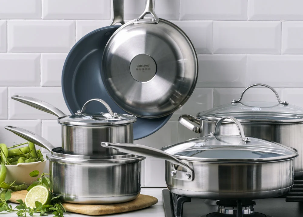 Hou het stijlvol in de keuken met de GreenPan Treviso collectie. Ze is gemaakt van roestvrij staal (RVS) en heeft een ingekapselde bodem die gelijkmatig opwarmt voor perfecte resultaten. De pannen hebben een Thermolon™ keramische anti-aanbaklaag, versterkt met diamant. Die zorgt niet alleen voor ongeziene bakprestaties, maar is ook makkelijk schoon te maken.