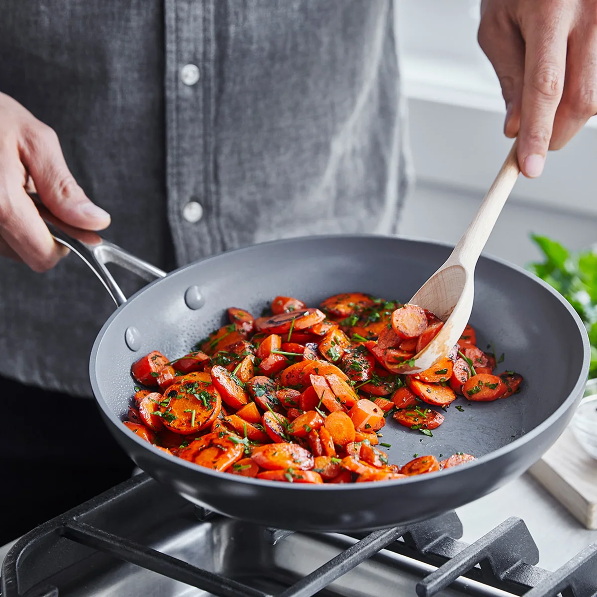 De Valencia Pro collectie is gemaakt van geanodiseerd aluminium voor maximale duurzaamheid en krasbestendigheid. De bodem met onze MagnetoTM technologie zorgt voor perfecte bakresultaten op alle warmtebronnen, inclusief inductie.