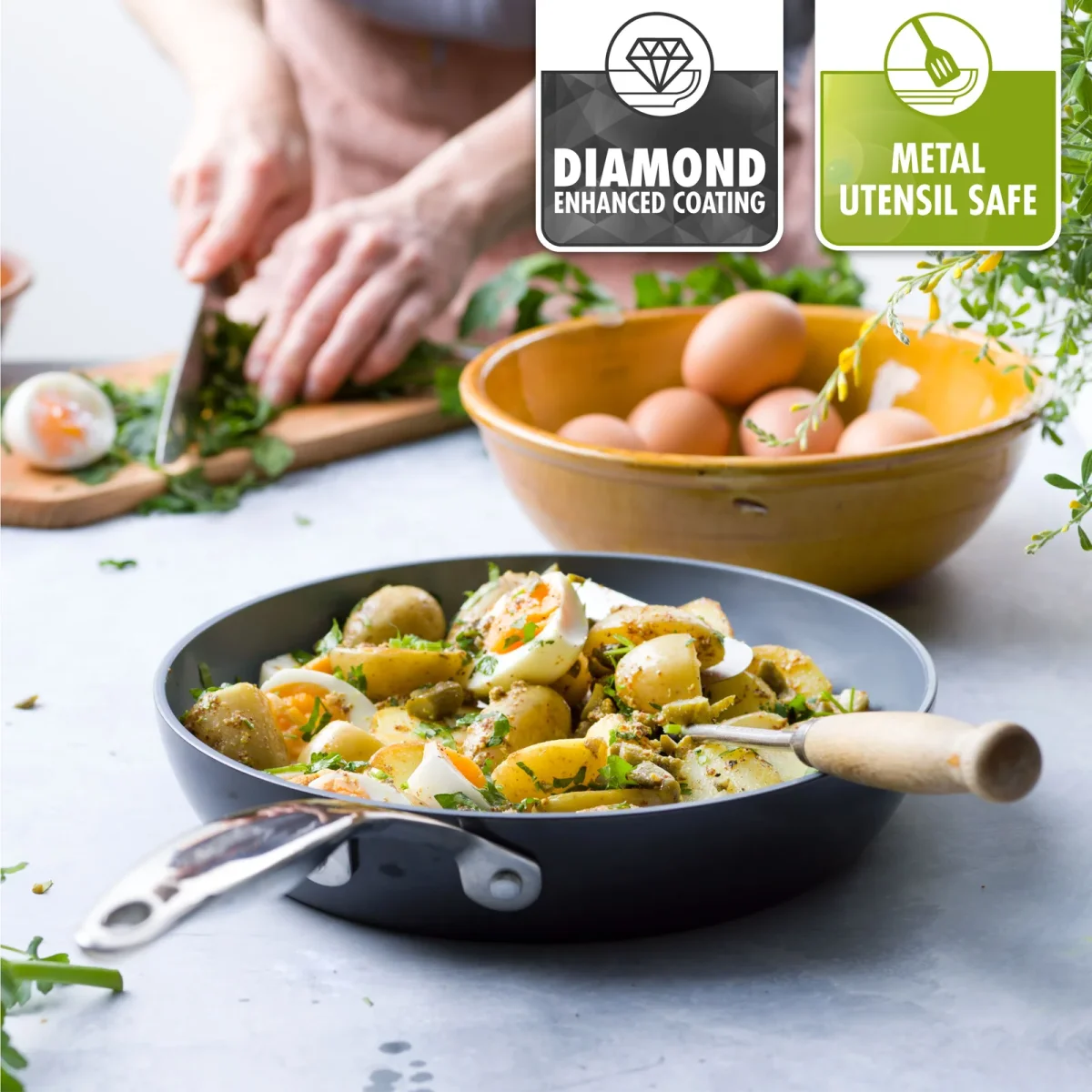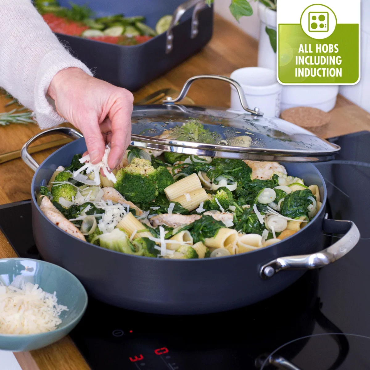 Ben je op zoek naar een extreem duurzame pan met een tijdloos design, ideaal voor dagelijks gebruik? Dan gaat onze Venice Pro collectie in de smaak vallen. De reeks is gemaakt van hoogwaardig gehard aluminium en uitgerust met onze Magneto inductietechnologie, zodat je ze kunt gebruiken op alle vuren.