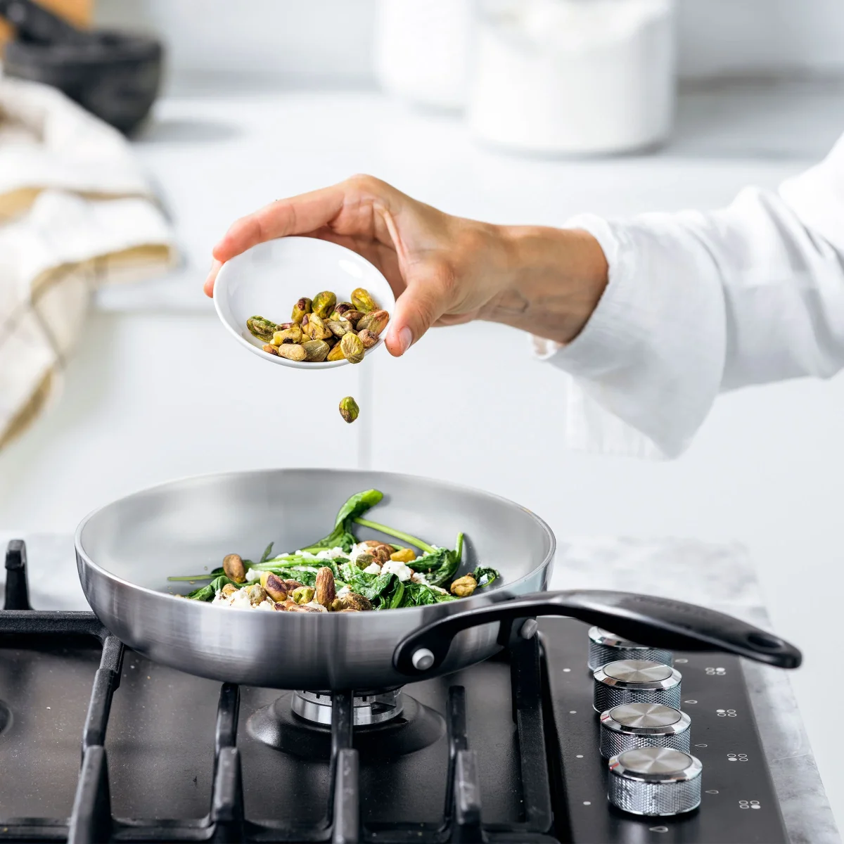 Deze collectie is een topper in je keuken! Het drielaags materiaal zorgt voor een optimale warmtegeleiding. Het roestvrij staal werd behandeld met onze Evershine™ technologie, waardoor je pannen minder snel verkleuren en langer mooi blijven. Extra eyecatcher: de matzwarte roestvrijstalen handgrepen.