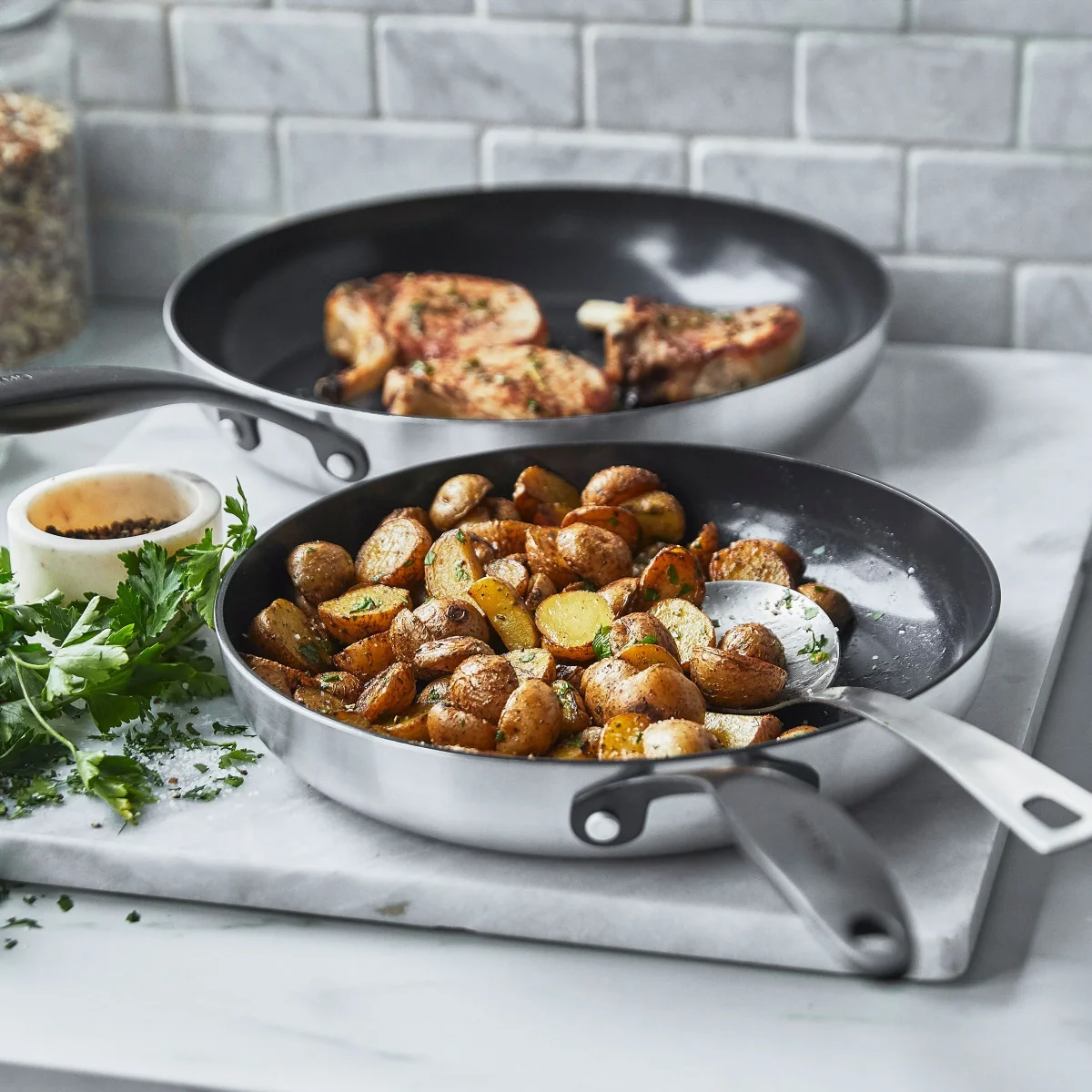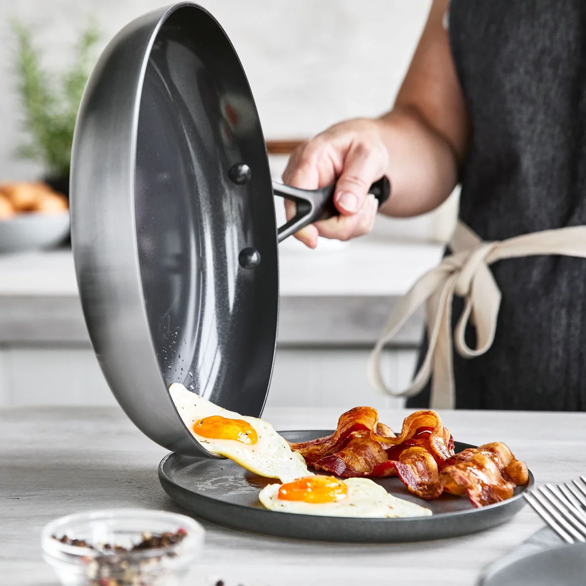 Deze collectie is een topper in je keuken! Het drielaags materiaal zorgt voor een optimale warmtegeleiding. Het roestvrij staal werd behandeld met onze Evershine™ technologie, waardoor je pannen minder snel verkleuren en langer mooi blijven. Extra eyecatcher: de matzwarte roestvrijstalen handgrepen.