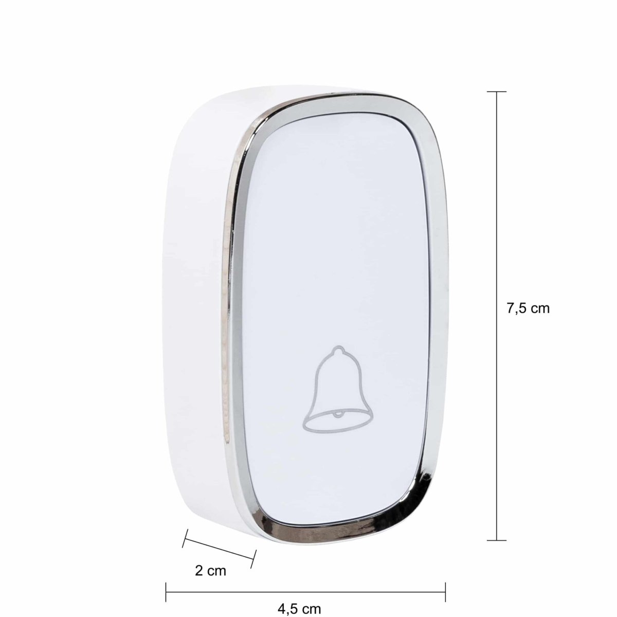 - Afmetingen deurbel: 2 x 4,5 x 7,5 cm (lxbxh)