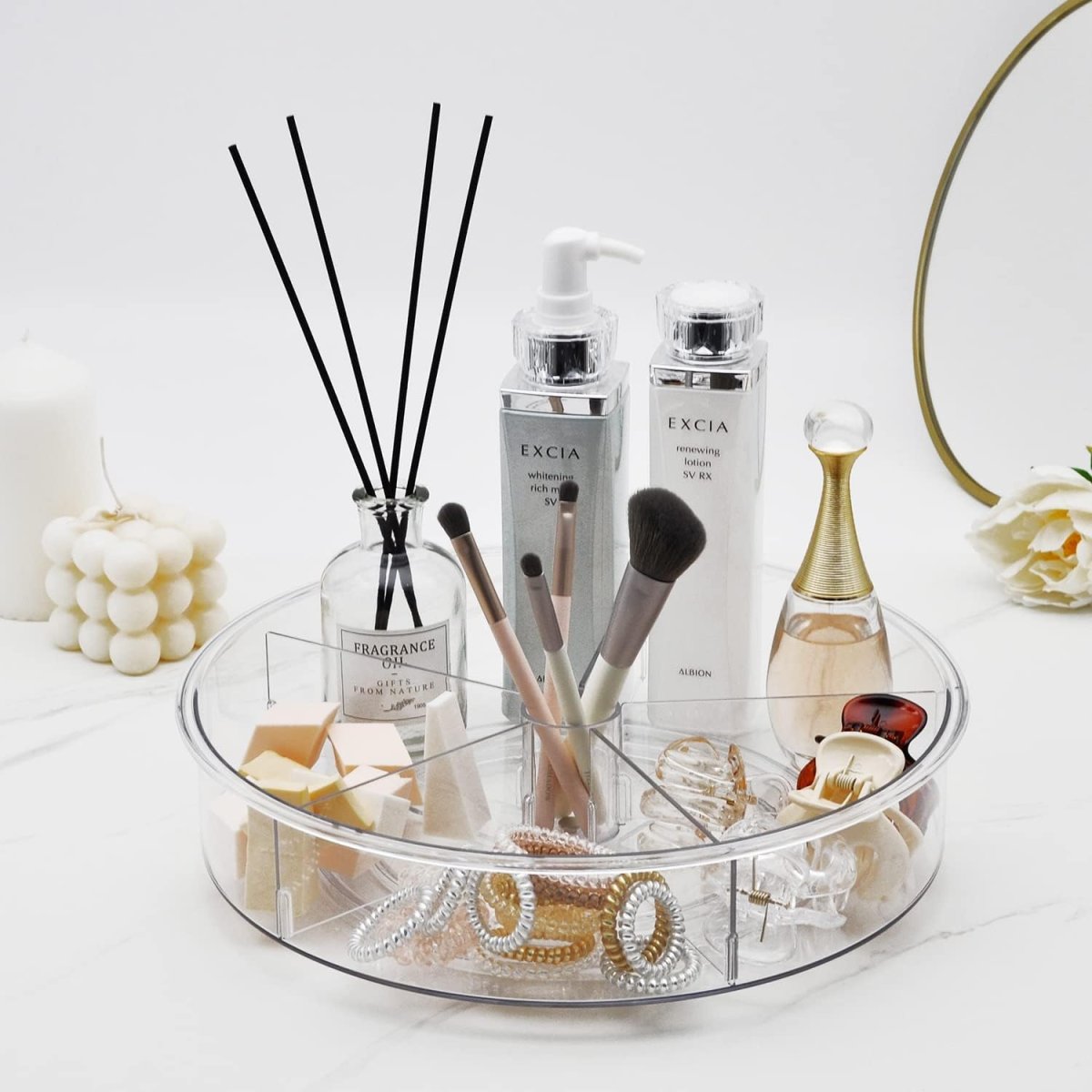 XIVADA Draaiplateau Hoog – Met 5 verdelers – 28 cm – Transparant