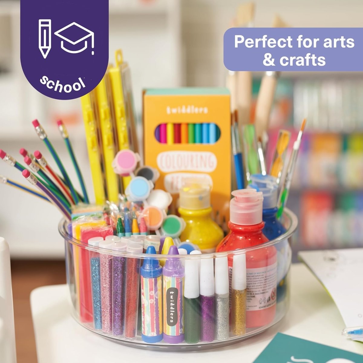 Speciaal bij dit draaiplateau zijn de verhoogde rand en 5 uitneembare verdelers. Zo bepaal je zelf de grootte en indeling van de sorteervakken. Door een hoge rand en verdelers kun je makkelijk kleine items in het draaiplateau bewaren. Bijvoorbeeld knutselspulletjes, make-up, snacks, kruidenpotjes!