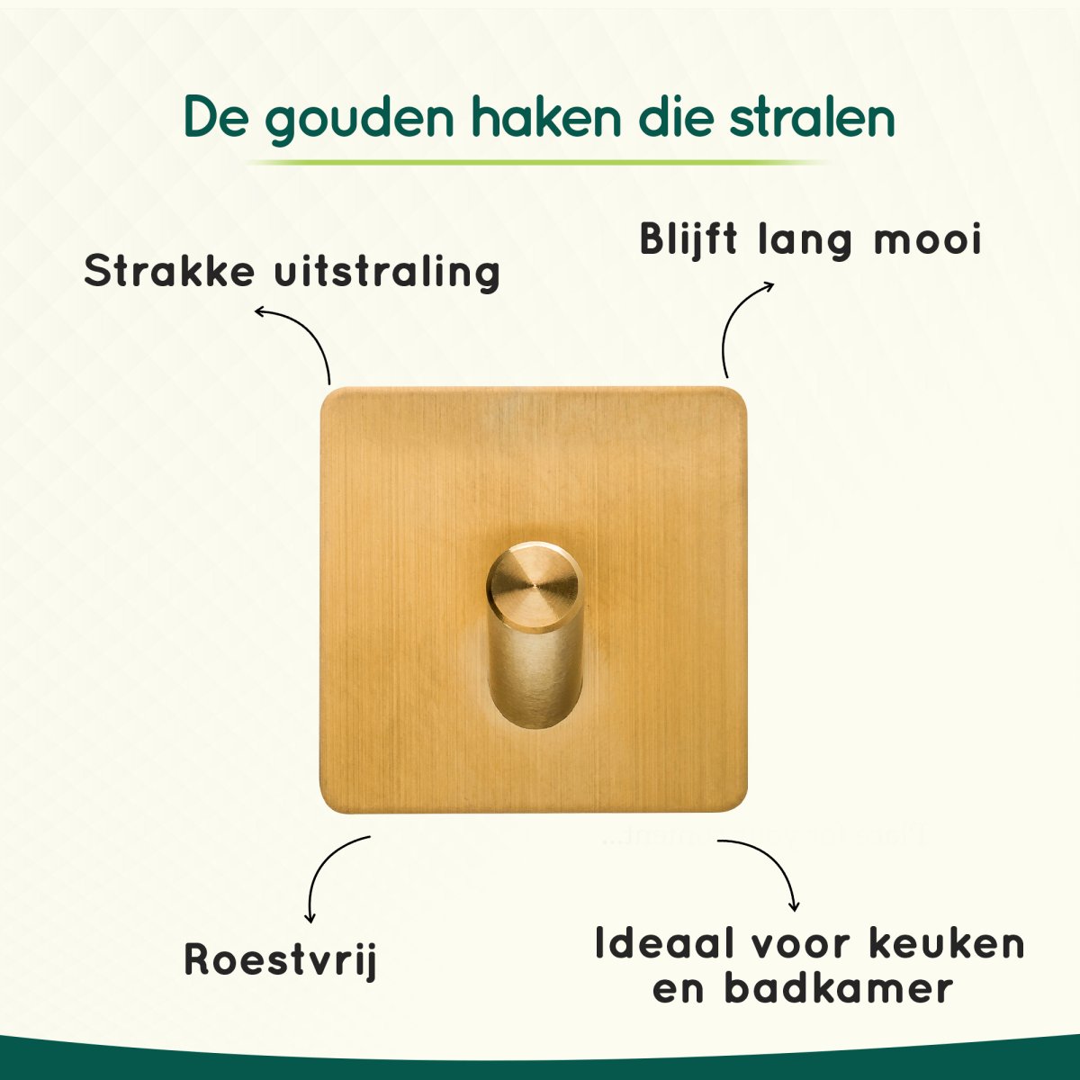 Gemaakt van roestvast staal (rvs) met een gouden coating. Daardoor blijven de haken lang mooi en verkleuren ze niet. Perfect voor een vochtige ruimte zoals een badkamer, bij een douche of in het toilet.