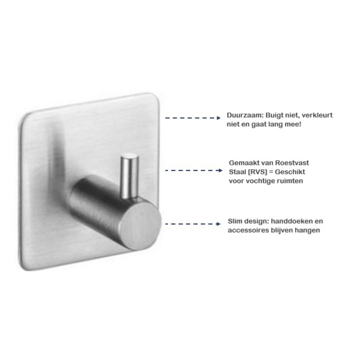 Geen klusser en bang om de muur te beschadigen? De zelfklevende wandhaakjes zijn binnen één minuut bevestigd, zonder dat je hoeft te boren. Bovendien hebben ze een strak design en door het gebruikte RVS materiaal gaan ze jarenlang mee. De zilveren kleur zorgt dat de haakjes voldoen aan de moderne interieurtrends.