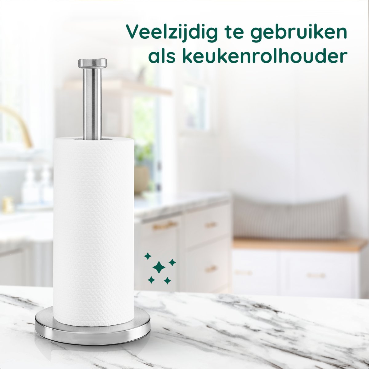 Het liefst altijd een keukenrol bij de hand tijdens het koken? Met een vrijstaande keukenrolhouder zit je goed. Zet ‘m bij de kookplaat tijdens het koken of op tafel als het diner wordt geserveerd. Zo vang je altijd direct de spetters van het knoeien op.