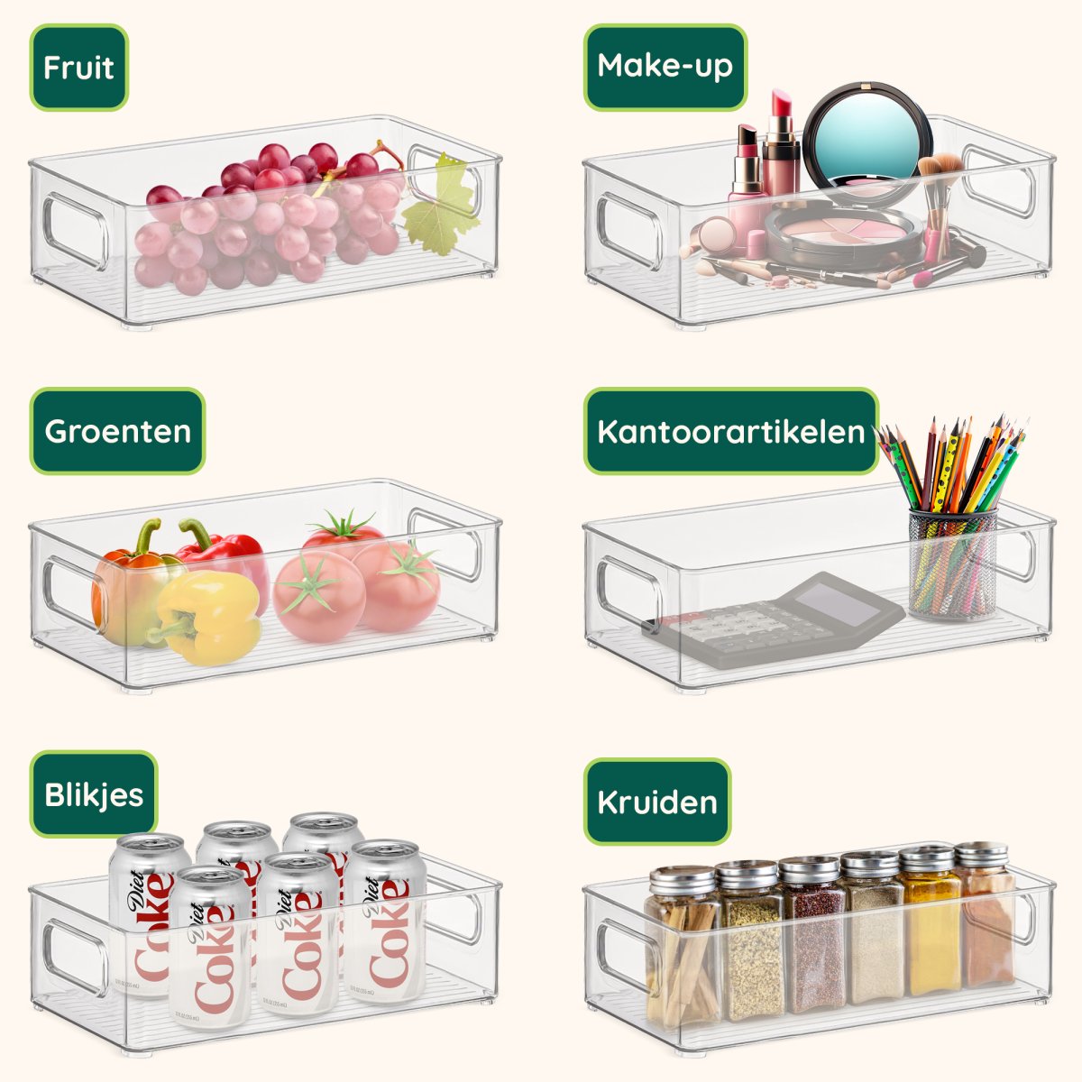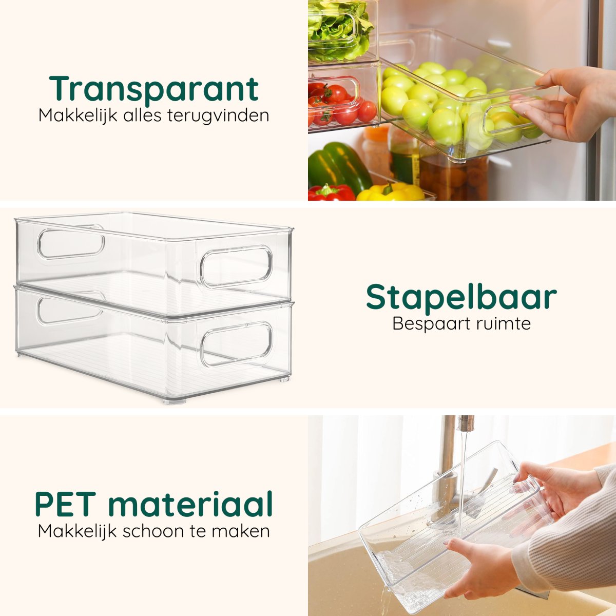 ✓ 4x stevige, transparante bakken