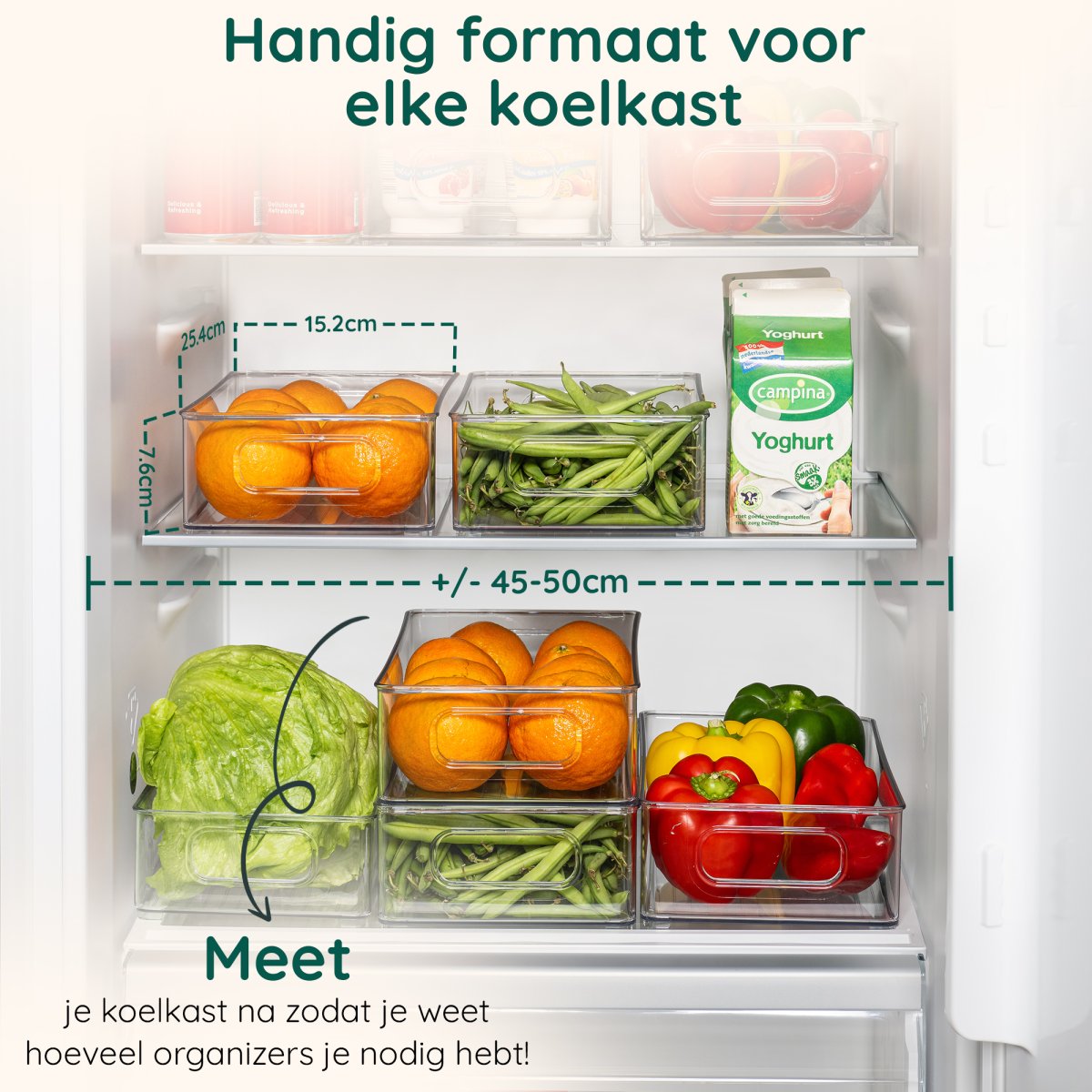 – Formaat afgestemd op Nederlandse en Belgische koelkasten: er passen 2 a 3 organizers op 1 plank.