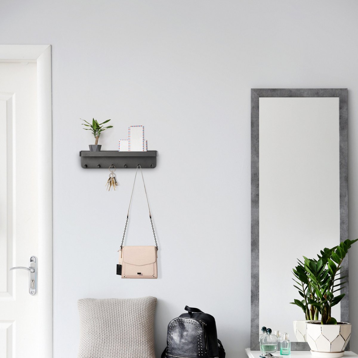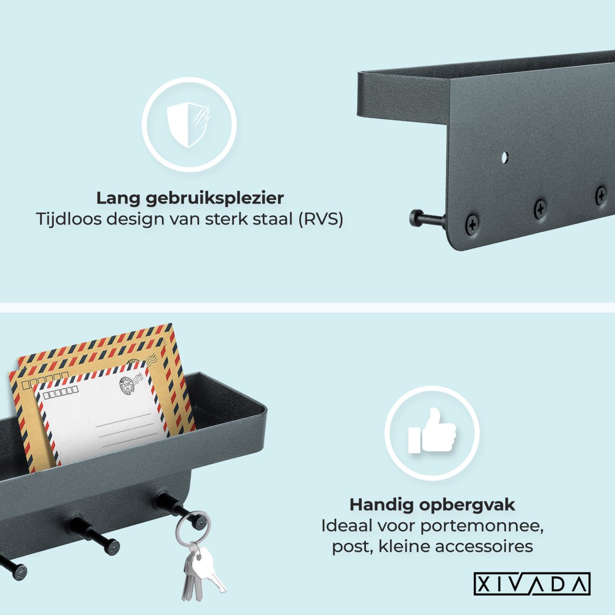 Bovenop het sleutelrekje vind je een handig opbergvakje. Leg hier belangrijke spullen zoals een (werk)telefoon, pasjes, zonnebrillen of post neer. Zo vergeet je deze niet mee te nemen!