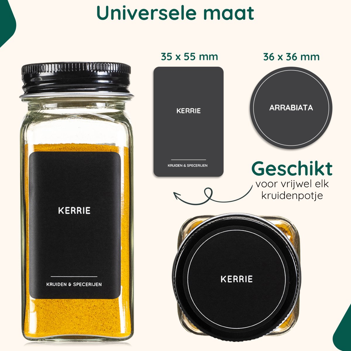 De kruiden stickers zijn zo ontworpen dat ze makkelijk leesbaar zijn. Het minimalistische ontwerp zorgt voor een strakke uitstraling, die goed combineert met vrijwel alle potjes. Plastic, zwarte dopjes of zilverkleurig staal, you name it!