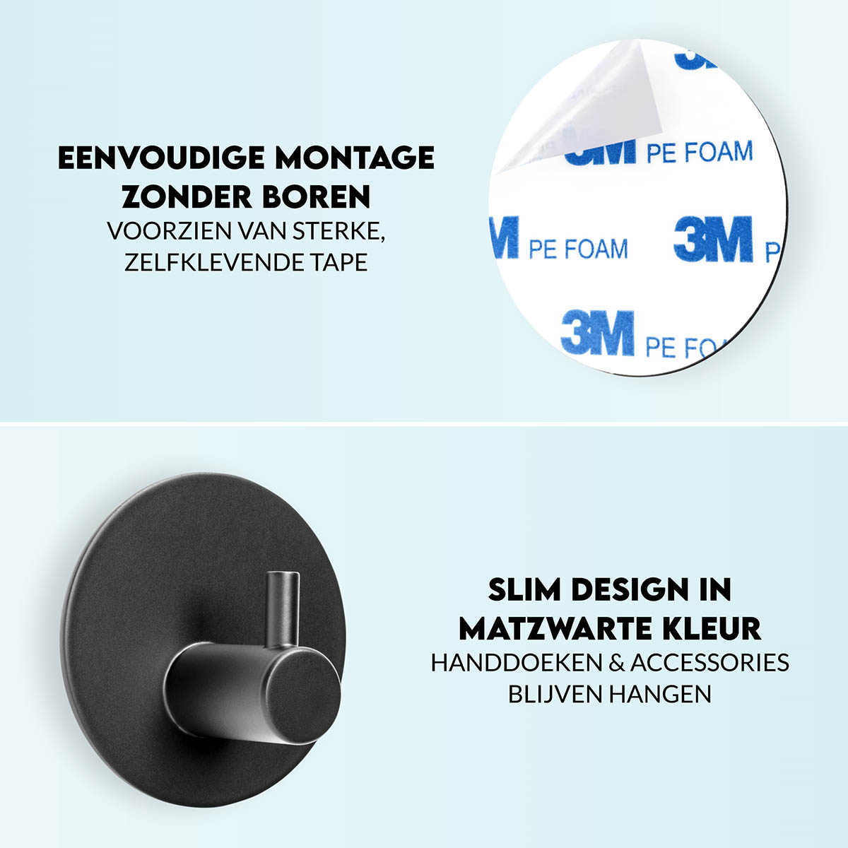 De zelfklevende accessoires alleen installeren op gladde ondergronden en 48 uur niet belasten na het plakken. Maak vooraf de muur goed schoon en droog en druk 60 seconden goed aan. Let op met stucwerk, geverfde muren en behang.