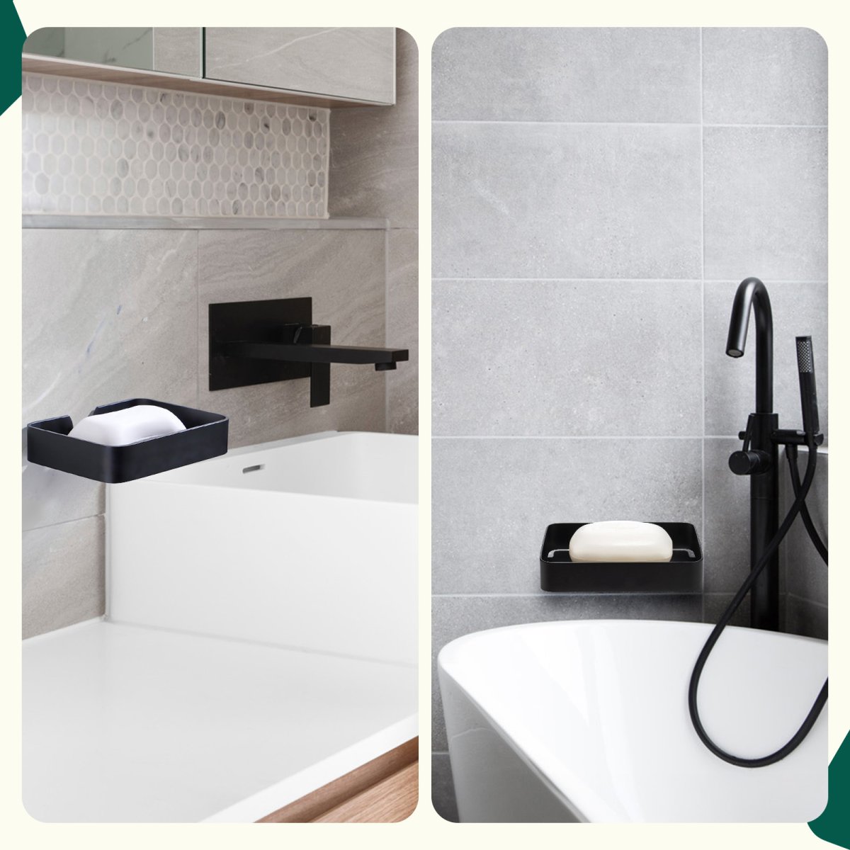 Een plek om je zeep op te bergen zonder afbreuk te doen aan je mooie badkamer? De zeephouder zorgt voor een vaste plek voor je zeep zodat je badkamer netjes blijft. Door zijn kleine formaat (10 x 13.5 cm) neemt hij nauwelijks ruimte in. Het design is minimalistisch en matzwart. Goede match voor de meeste badkamers dus!